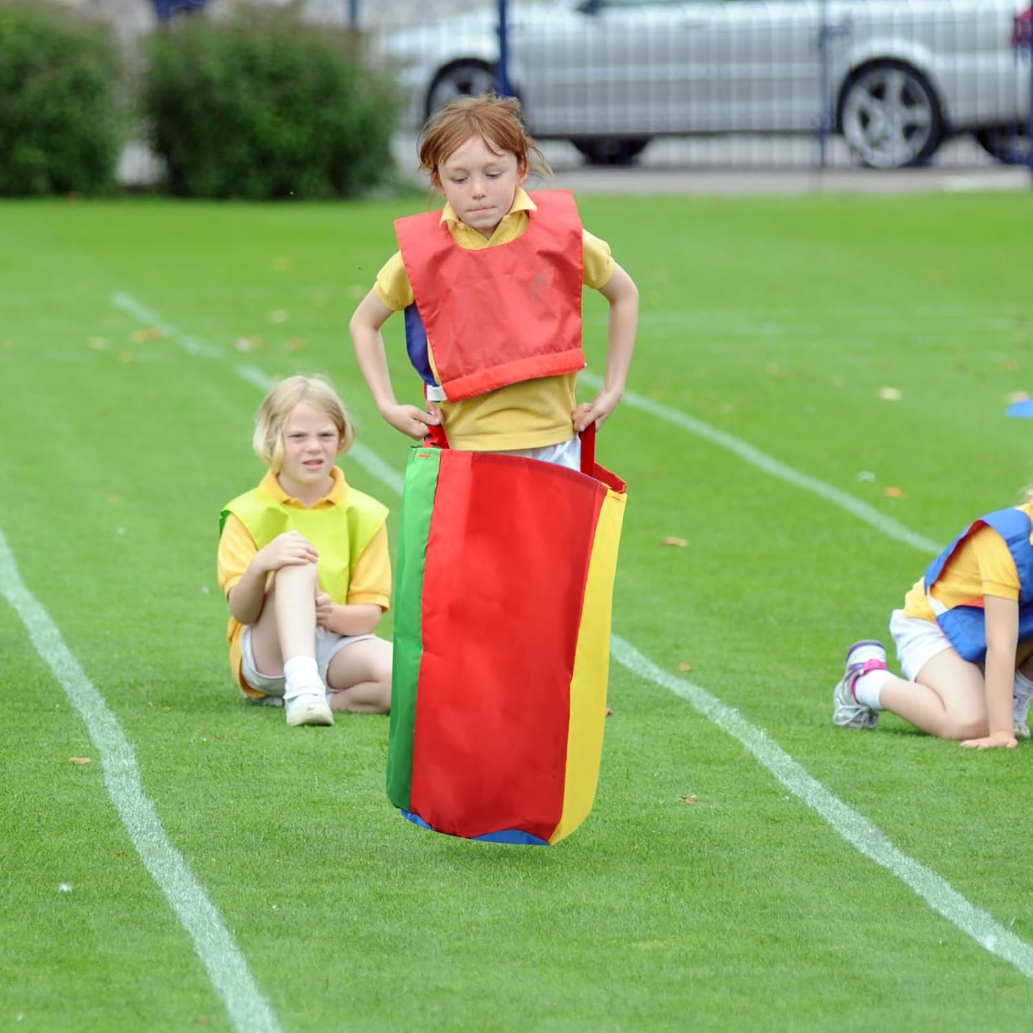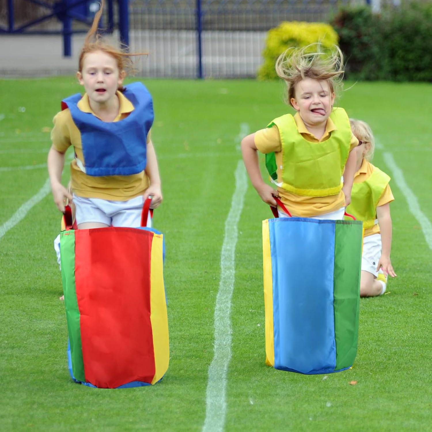 【Materiale addensato】: il sacco è realizzato in tessuto a doppio strato di alta qualità, che ha una maggiore resistenza allo strappo e capacità di carico, pregevole fattura, sicuro e inodore, non facile da pilling e può essere utilizzato molte volte. 【4 Sacchetti da Salto Colorati】: Il pacchetto include 4 sacchi da salto colorati a doppio strato, la dimensione del prodotto è media (50x70 cm), perfetta per adulti e bambini, sufficiente per soddisfare le tue esigenze di gioco indoor e outdoor. 【Giochi divertenti all'aperto】: la borsa da corsa con i sacchi è facile da usare, basta posizionare le gambe nel sacco e sollevare il sacco fino alla vita. Non solo può portare gioia ai concorrenti, ma può anche esercitare l'equilibrio e le capacità di salto e migliorare efficacemente la flessibilità del corpo. 【Design colorato】: il sacco da salto è dai colori vivaci, rendendoti più accattivante nella competizione. Il fondo è robusto e resistente all'usura, non facile da rompere, perfetto per giochi sul prato all'aperto per bambini e adulti. 【Ideale per Feste e Sagre】: Il sacco da salto è perfetto per feste di compleanno, giochi in cortile, campeggio, riunioni di famiglia, giochi sul prato, sport scolastici, picnic, carnevali, ed è un gioco all'aperto ideale per le riunioni di famiglia per migliorare l'amicizia e le relazioni genitori-figli attraverso il gioco.