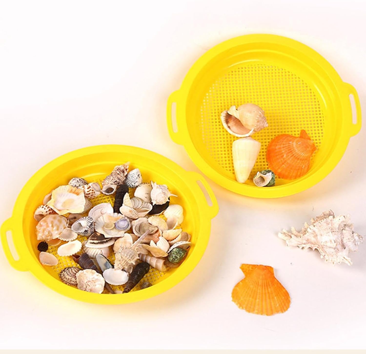 per vacanze al mare, esplorazione del giardino o sandbox dove i bambini possono filtrare conchiglie, pietre preziose e divertenti "oro" dalla sabbia Questi colini multiuso per sabbia possono essere utilizzati anche come strumenti per giochi d'acqua e gadget educativi, scatenando creatività durante le gite in spiaggia in famiglia o le attività di apprendimento STEM Realizzati con questo setaccio per bambini da 4 pezzi, per tesori in spiaggia e giochi con la sabbia Ideale per bambini dai 12 anni in su, per sviluppare le capacità motorie attraverso attività interattive all'aperto come beachcombing o cacce al tesoro in giardino Il design leggero garantisce una maneggevolezza sicura mentre le maglie rinforzate resistono alle avventure di scavo e setacciatura
