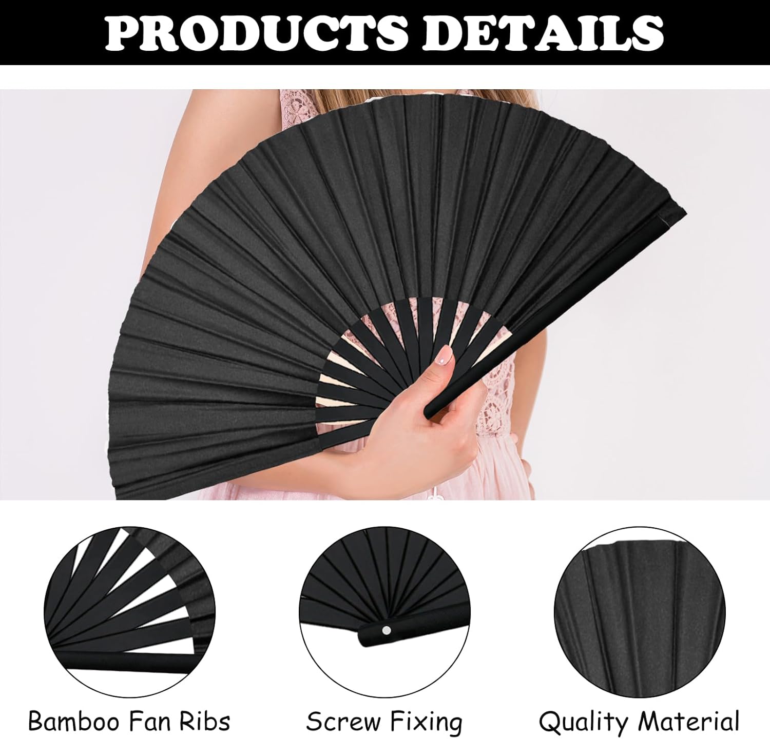 【Materiale】Il tessuto di alta qualità di un ventaglio mantiene la sua lucentezza nera profonda sia che venga utilizzato per il raffreddamento quotidiano o durante le esibizioni sul palco. Il legno di bambù è insensibile alle serate di carnevale o in discoteca. L'impugnatura ergonomica garantisce una presa comoda e consente movimenti senza sforzo durante le esibizioni. Questo ventaglio di danza in linea è progettato per l'allenamento intensivo. Le nervature della ventola sono realizzate in legno di bambù, che garantisce una lunga durata. 【Accessori pratici】 Gli scomparti per la danza in linea sono leggeri e portatili, ti mantengono fresco durante le prove o le attività all'aperto. La sua apertura alare di 33 cm crea un effetto visivo drammatico senza affaticare i polsi. Questo li rende una buona scelta per gruppi di ballo country o spettacoli di flash mob. Realizzato per gli amanti del ritmo, questo ventaglio produce ticchettii nitidi ad ogni swing, adatti per movimenti di danza di linea sincronizzati. 【Dispositivo di raffreddamento】 Questo ventilatore pieghevole Line Dance viene fornito con una custodia in flanella nera, comoda da portare con te quando esci e fai attività all'aperto. Questo grande ventaglio pieghevole è un regalo premuroso per tua moglie, tua madre e tua sorella. Può essere utilizzato per attività come danza, artigianato, ecc. Questo ventaglio da ballo in linea è elegante e può essere facilmente aperto e chiuso con un movimento della mano. 【Ampia applicazione】 Ai fotografi piace utilizzare gli ampi scomparti come supporto per la fotografia retrò perché ottengono risultati cinematografici migliori pur essendo un supporto pratico. Questo ventaglio è sia pratico che artistico e può essere utilizzato non solo nella vita di tutti i giorni ma anche per spettacoli teatrali, giochi di ruolo, discoteca e altre attività. La chiusura rapida può essere azionata con una mano: essenziale per coordinare i movimenti di danza. 【Fornitura】Riceverai 4 ventagli pieghevoli per balli di gruppo, inclusa una custodia. Questo ventilatore è durevole e può essere utilizzato non solo come dispositivo di raffreddamento, ma anche in spettacoli di danza, Tai Chi, discoteca, ecc. Funziona bene anche come supporto fotografico. Se hai domande sul nostro prodotto durante l'uso, contattaci. Risolveremo il problema il più rapidamente possibile. Speriamo sinceramente di offrirti un'esperienza piacevole.