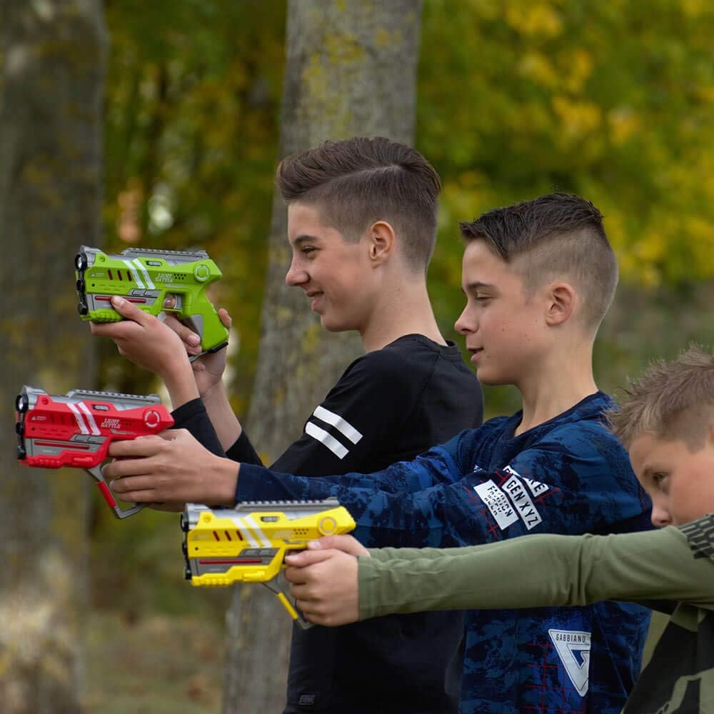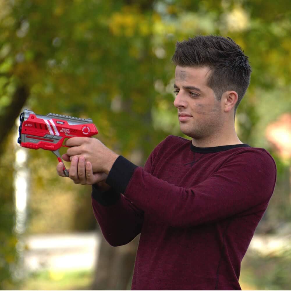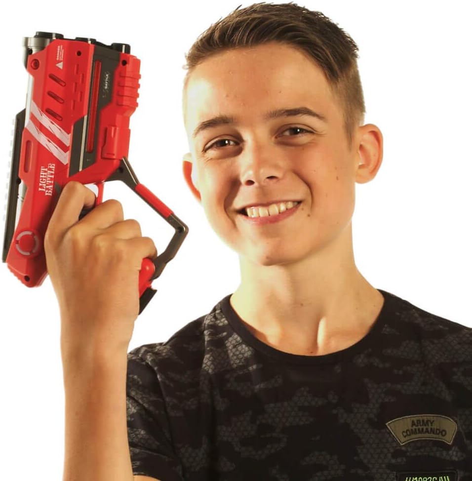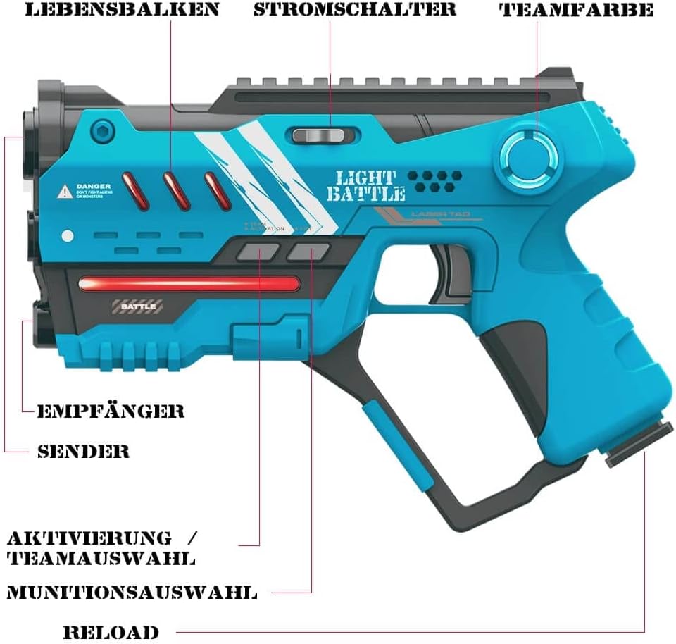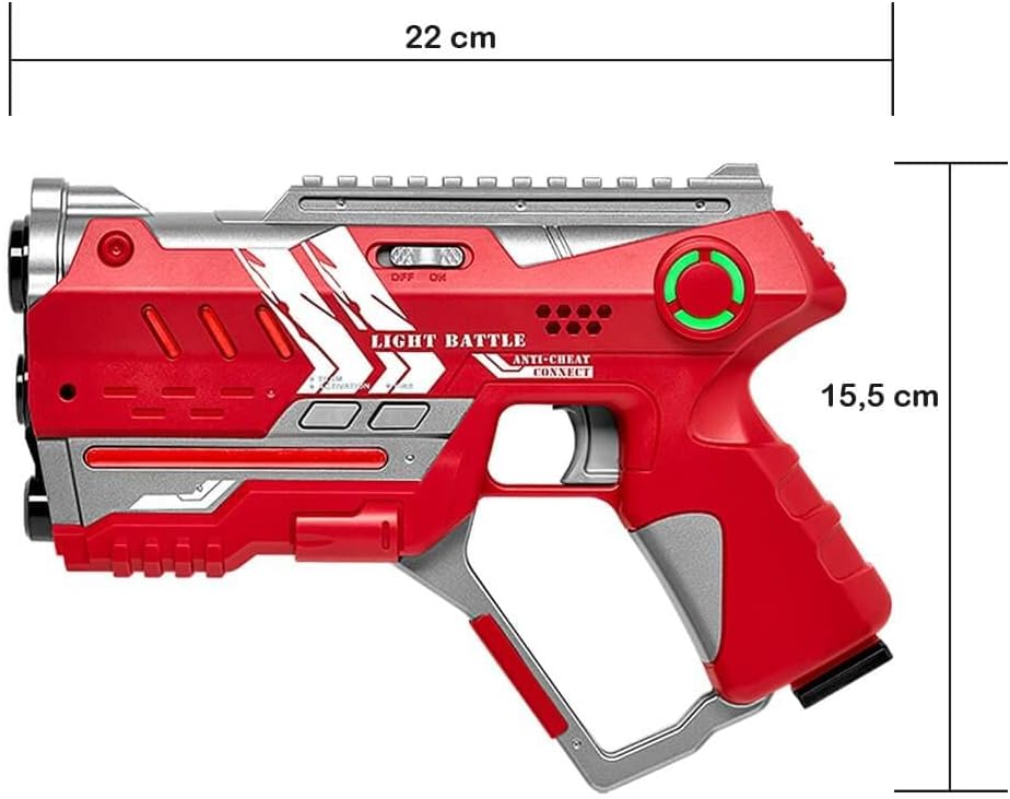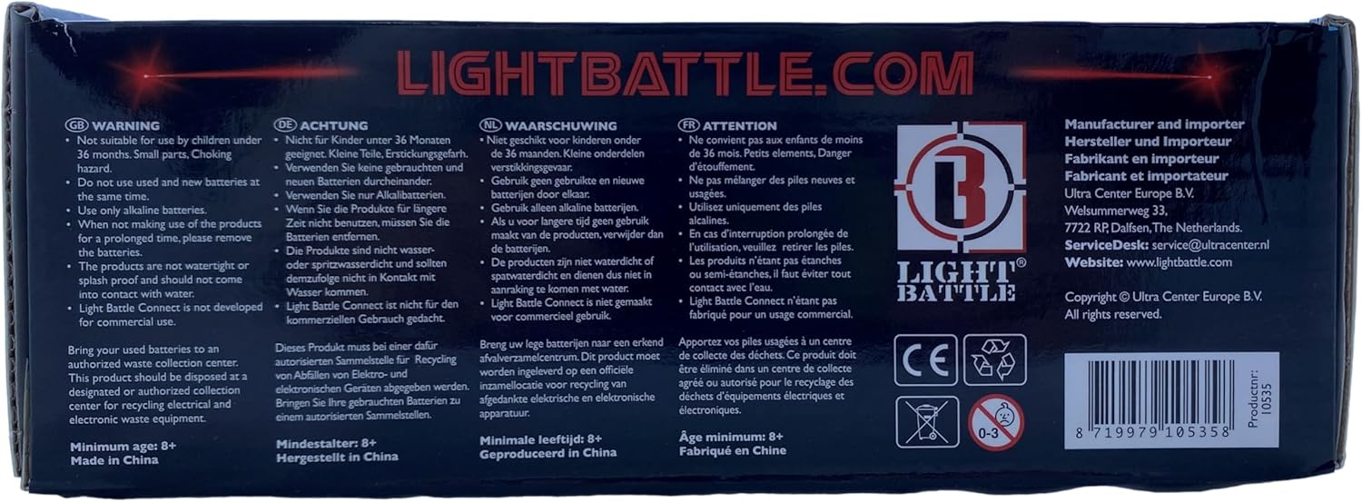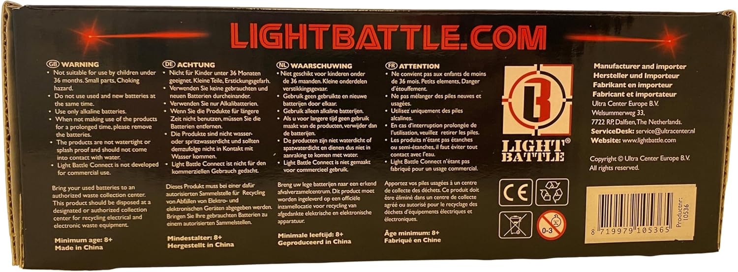 LIGHT BATTLE CONNECT - Un cannone laser Light Battle Connect può essere collegato a un giubbotto Light Battle Connect. Questo ti colpirà sul giubbotto invece che sulla tua arma. Quando l'arma è collegata a un giubbotto, comunicano tra loro. Trascorrere tutta la tua vita sul giubbotto disattiverà il cannone laser collegato. FUNZIONE ANTI-CHEAT UNICA - Queste nuove pistole anti-cheat Light Battle Connect hanno una caratteristica unica che rende impossibile imbrogliare. Laddove è possibile ripristinare altri marchi di cannoni laser, ciò non è più possibile con questi cannoni a causa dell'esclusiva funzione anti-cheat. Il gioco laser con pistole anti-cheat da battaglia leggera è quindi molto più divertente e stimolante. GIOCO LASERGAME LIGHT BATTLE - Puoi giocare ai giochi laser con un numero illimitato di giocatori distribuiti su un massimo di 4 squadre. Prova ad eliminare il tuo avversario. Quando tutte le vite del giubbotto del tuo avversario sono scomparse, vinci! Determina la tua tattica scegliendo uno dei 4 tipi di munizioni. Ogni tipo di munizione ha le proprie prestazioni di fuoco. GIOCATTOLO LASER SICURO AL 100% - Il giocattolo laser Light Battle utilizza luce infrarossa innocua e invisibile, rendendolo sicuro al 100%. Dall'arma non provengono raggi laser pericolosi. Tutti i prodotti Light Battle sono marcati CE e rispettano le normative europee sulla sicurezza dei giocattoli. Il set del gioco laser viene fornito con un manuale completo in olandese, inglese, tedesco e francese. GARANZIA - Una garanzia di rimborso di 30 giorni si applica alle persone che non utilizzano i nostri prodotti a fini commerciali.
