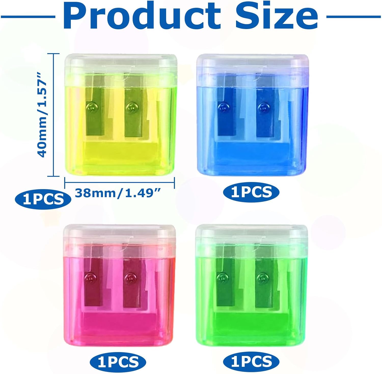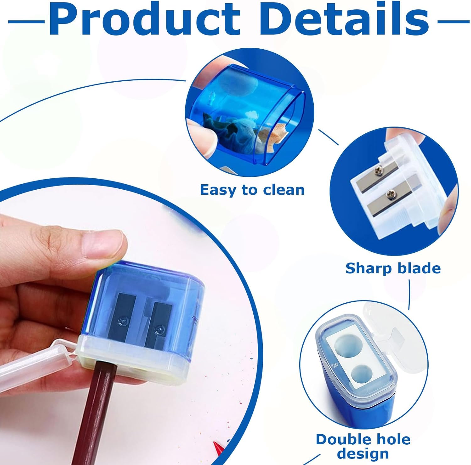 Materiali Di Qualità: il guscio esterno della matita è in plastica di alta qualità durevole, mentre la lama interna è in acciaio al carbonio di alta qualità. Il Prodotto Non È Tossico E Senza Gusto, E Non Farà Fallire Le Mani Dei Bambini. Design a due fori: 2 fori di dimensione-matite. La Temperamatite Ha Due Fori Di Diverse Dimensioni. È adatto per matite di diverse dimensioni, matite per trucco e gesso. Facile Da Trasporre: La Matita Con Serbatoio In Plastica È Piccola E Compatta, Può Essere Indossata Ovunque O In Qualsiasi Momento, È Una Cancelleria Pratica E Bella Per Scuole, Uffici E Case. Sicurezza e sicurezza: le dimensioni della matita per bambini lame in acciaio al carbonio di alta qualità sono completamente avvolte in un guscio di plastica solido, quindi non devi preoccuparti che la lama possa esporre e ferire le mani del tuo bambino durante l'uso. Ampiamente usato: questa matita portatile portatile è adatta a diversi tipi di matite, matite per trucco e matite di cera. È adatto per la scuola, l'ufficio, la famiglia, i progetti d'arte, ecc.