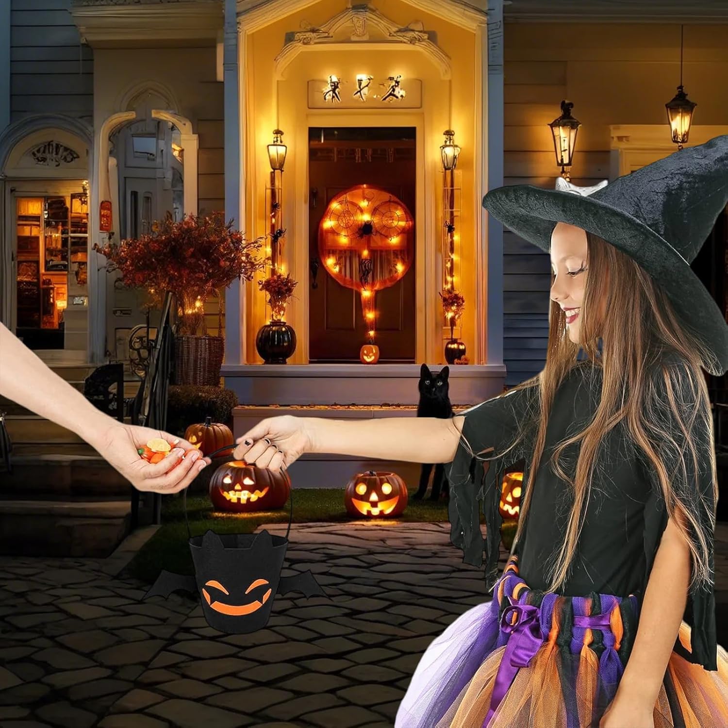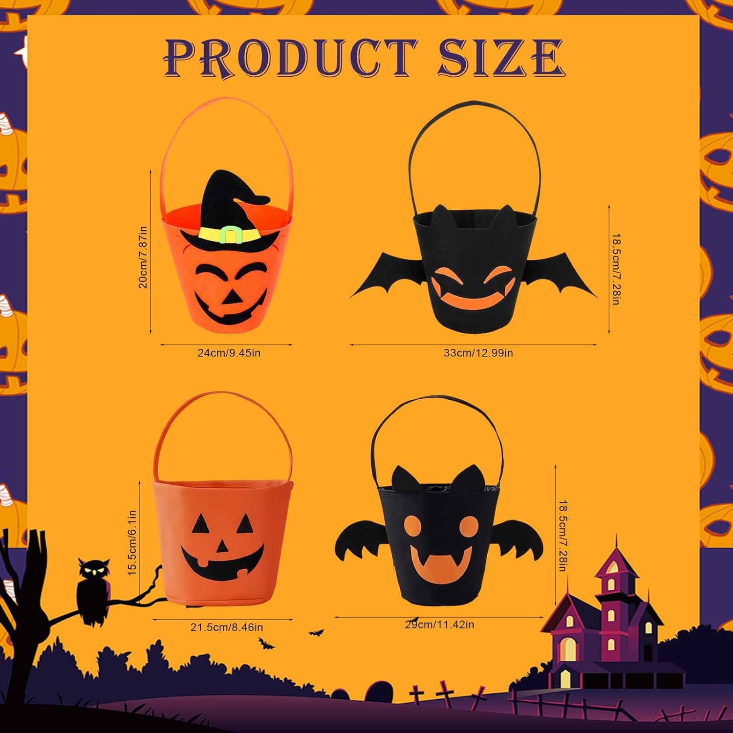 Alta qualità: i regali per feste di Halloween sono realizzati in materiale di feltro di alta qualità, robusto e resistente, resiste a urti e urti durante la raccolta di caramelle, non si strappa facilmente e offre una buona stabilità dimensionale e resistente alle intemperie, durevole e riutilizzabile Contenuto della confezione: riceverete 4 cestini per Halloween per bambini con i due temi di zucca e pipistrello in 4 diversi design, forme carine e divertenti offrono diverse possibilità di scelta per i bambini e li rendono un colpo d'occhio durante la raccolta di caramelle sulla strada Pratica maniglia per il trasporto: il secchio per caramelle di zucca è dotato di un comodo manico, morbido e comodo da impugnare, senza tagliare in mano, cuciture rinforzate sui punti di collegamento assicurano che il manico non si strappi facilmente, anche a pieno pieno pieno di caramelle, ideale per le notti di Halloween Versatile: il secchio per caramelle di Halloween offre spazio sufficiente per conservare non solo dolci e snack, ma anche frutta, giocattoli, regali di festa, salviette umidificate o piccoli oggetti, il grande design di apertura consente di riempire e rimuovere facilmente i dolci, ideale per una caccia di caramelle di successo Regalo perfetto per Halloween: la nostra borsa per caramelle di Halloween a forma di pipistrello e zucca è fai da te, ideale per decorare con decorazioni di Halloween, perfetta come regalo per bambini, studenti o amici e parenti per feste di Halloween