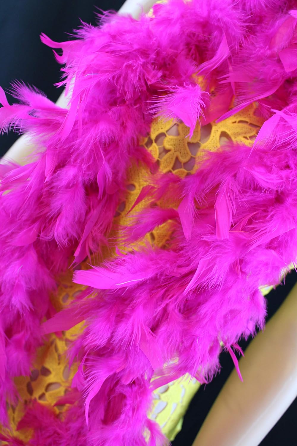 Peso: 40 grammi Dimensioni: 72 pollici di lunghezza x 6-7 pollici di larghezza Materiale: piuma di tacchino la scelta migliore per regali, feste, travestimenti, spettacoli teatrali o abiti per servizi fotografici. Oltre 16 colori tra cui scegliere. Prima dell'uso, scrollarsi di dosso la piuma in eccesso all'aperto. Poiché le nostre piume sono tutte naturali e realizzate a mano, potrebbero esserci gocce di piume, ma ciò non influirà sul tuo utilizzo. Tutti i colori del boa di piume scure NON sono resistenti al colore. Stai lontano dai colori più chiari..