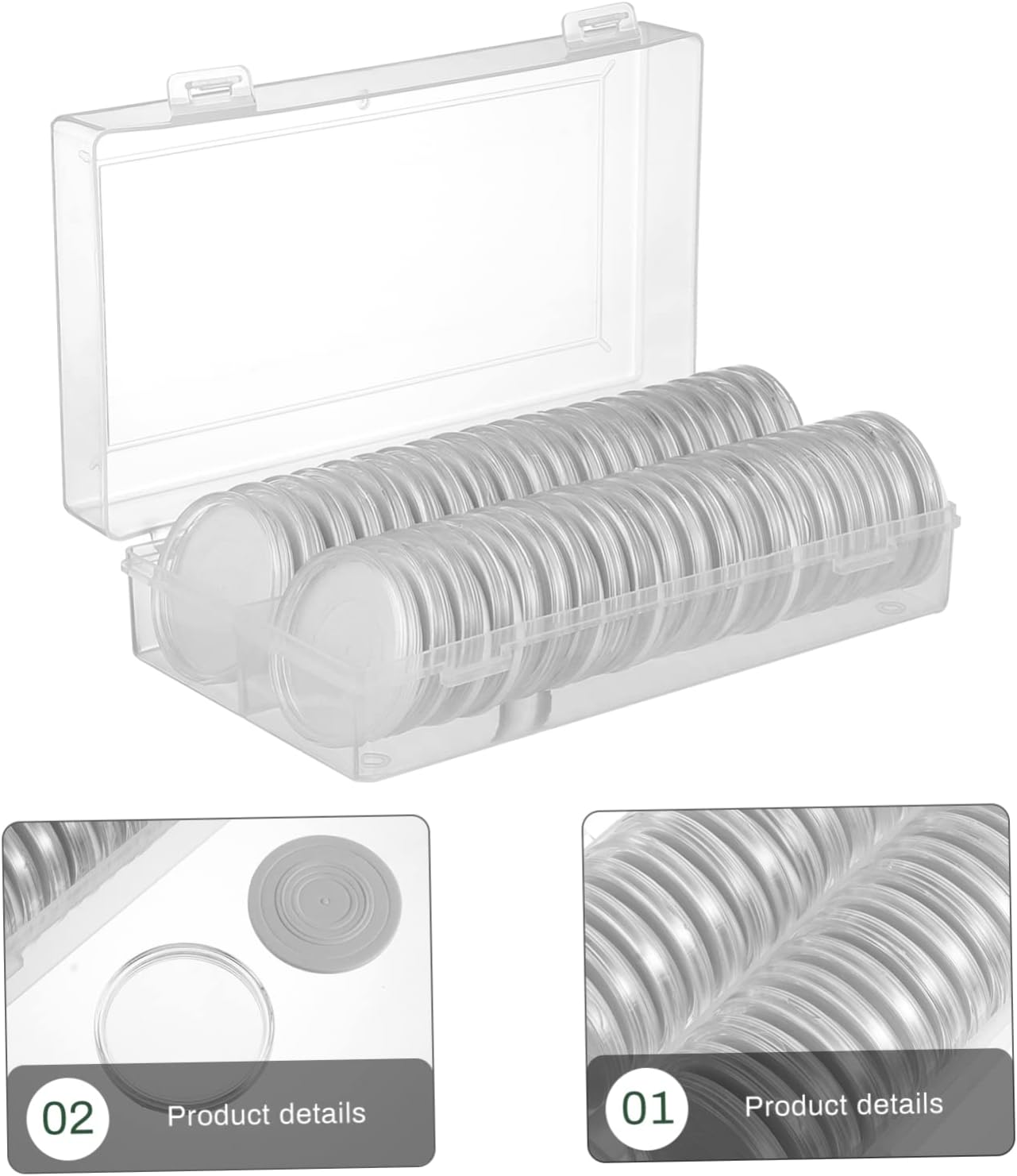 Scatole monete: ottime per i collezionisti monete per conservare e proteggere proprie monete preferite, scatole monete per collezionisti Capsule per monete: questo kit capsule per monete include 40 capsule per monete con guarnizioni protezione e 1 scatola per riporre monete, per monete Collezione monete: ogni capsule per monete ha piccola parte scanalatura nel bordo esterno, puoi aprire i capsule per monete facilmente e comodamente con la mano, contenitori per la conservazione delle monete Scatole portamonete: dimensioni sono 16/20/25/27/30/38 mm, adatte a contenere la maggior parte dei monete, supporti per tubi portamonete Tubi stoccaggio trasparenti: questo set protezione per monete include 40 custodie per capsule monete con guarnizioni protezione e 1 scatola stoccaggio, capsule monete
