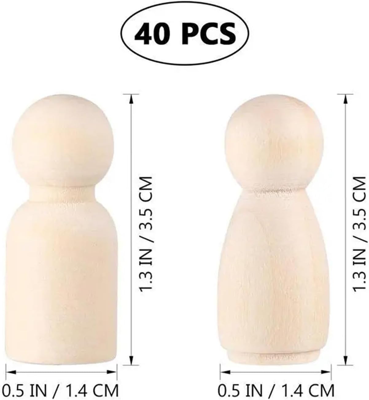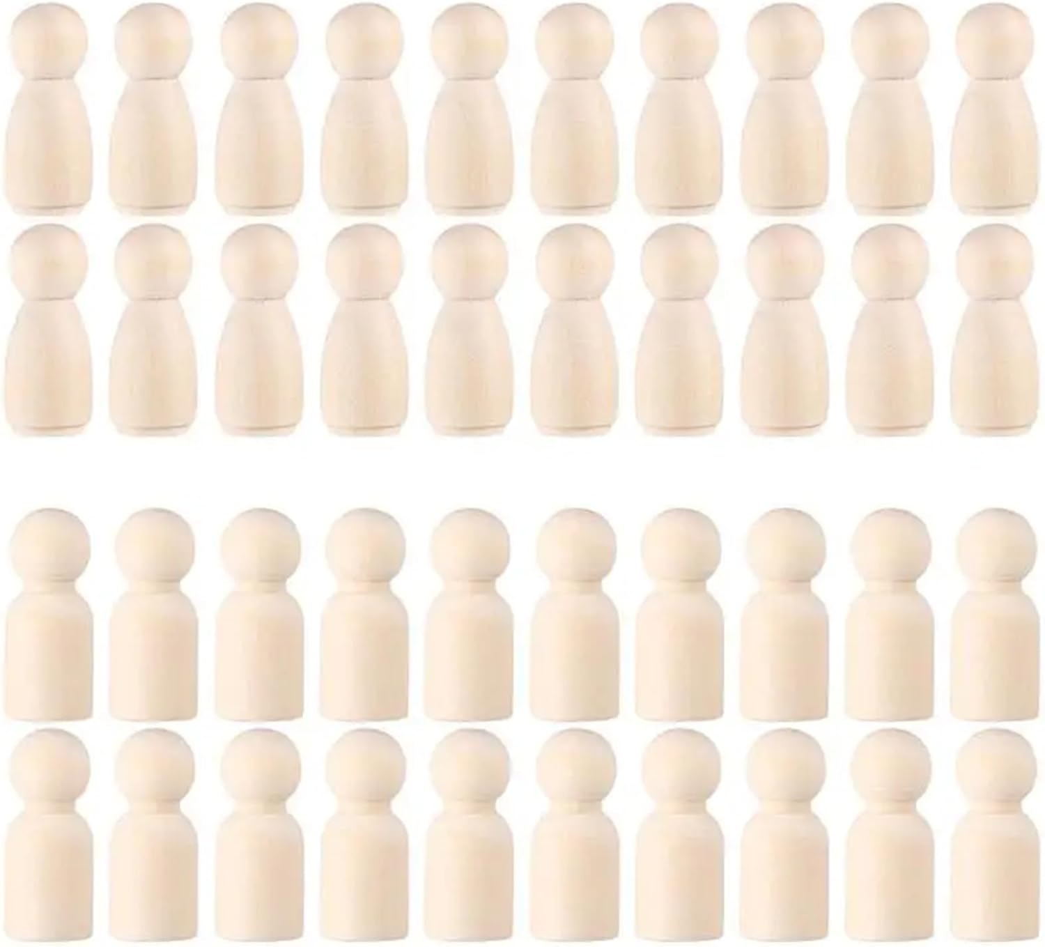 40 pezzi di pioli legno, bambole persone, artigianato non finito, pittura for arte fai da te