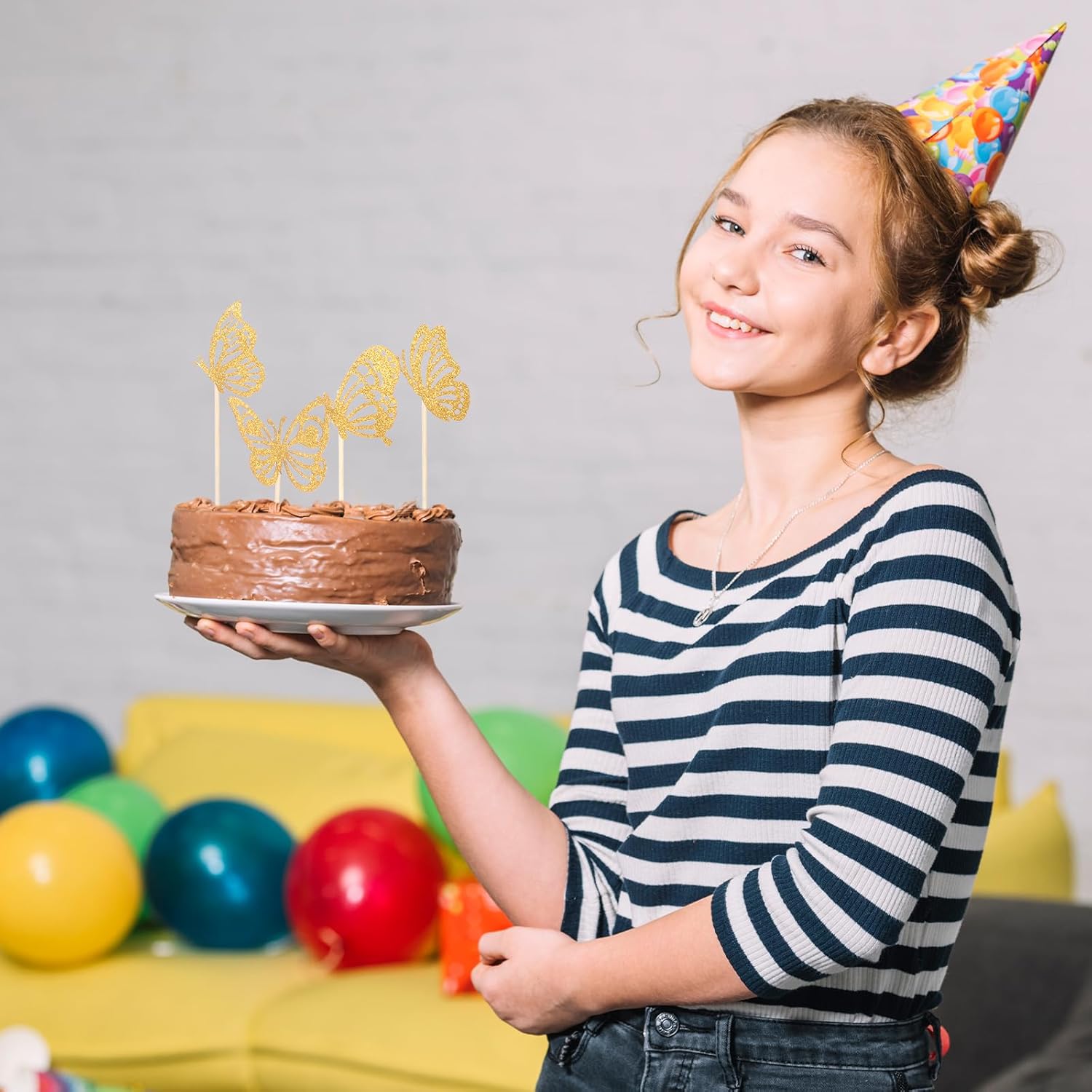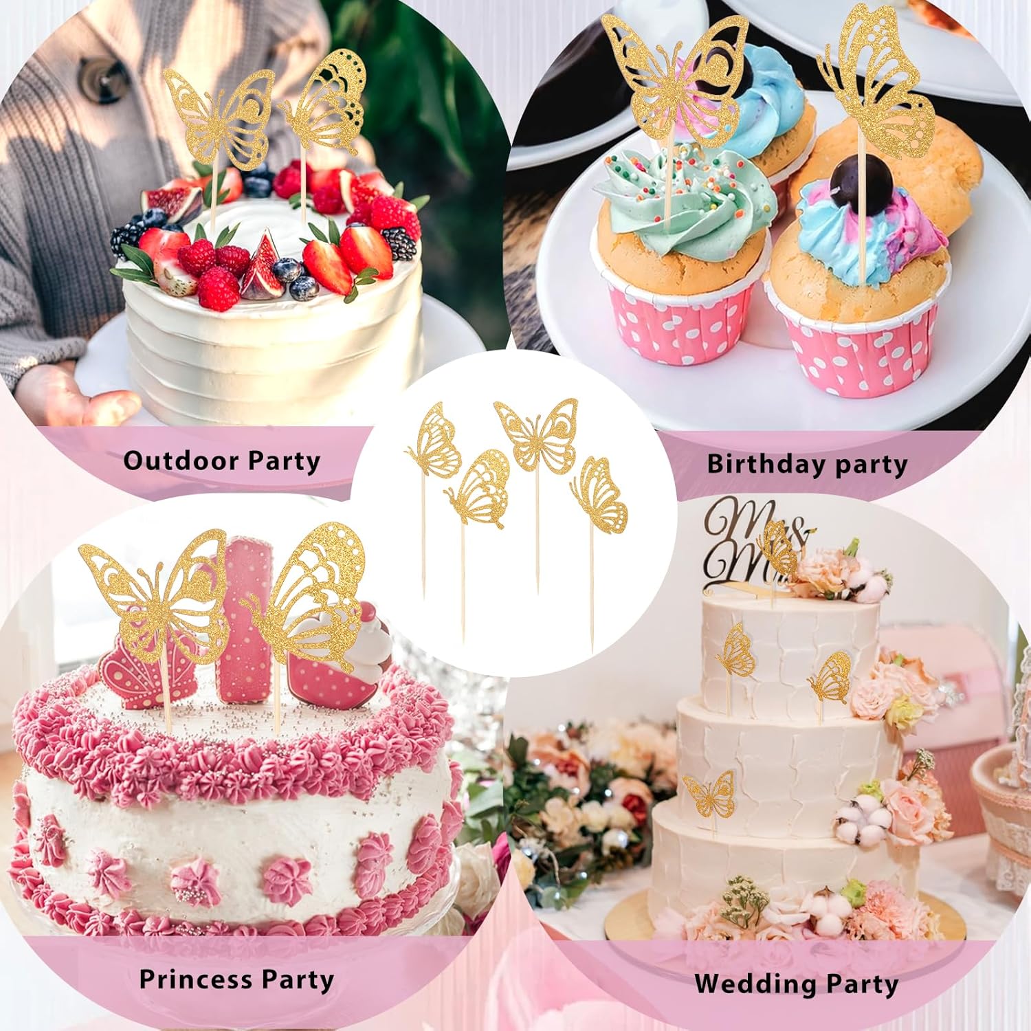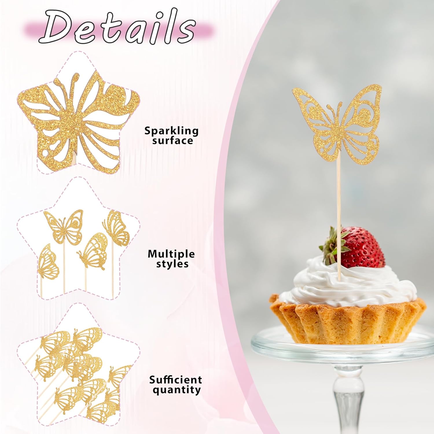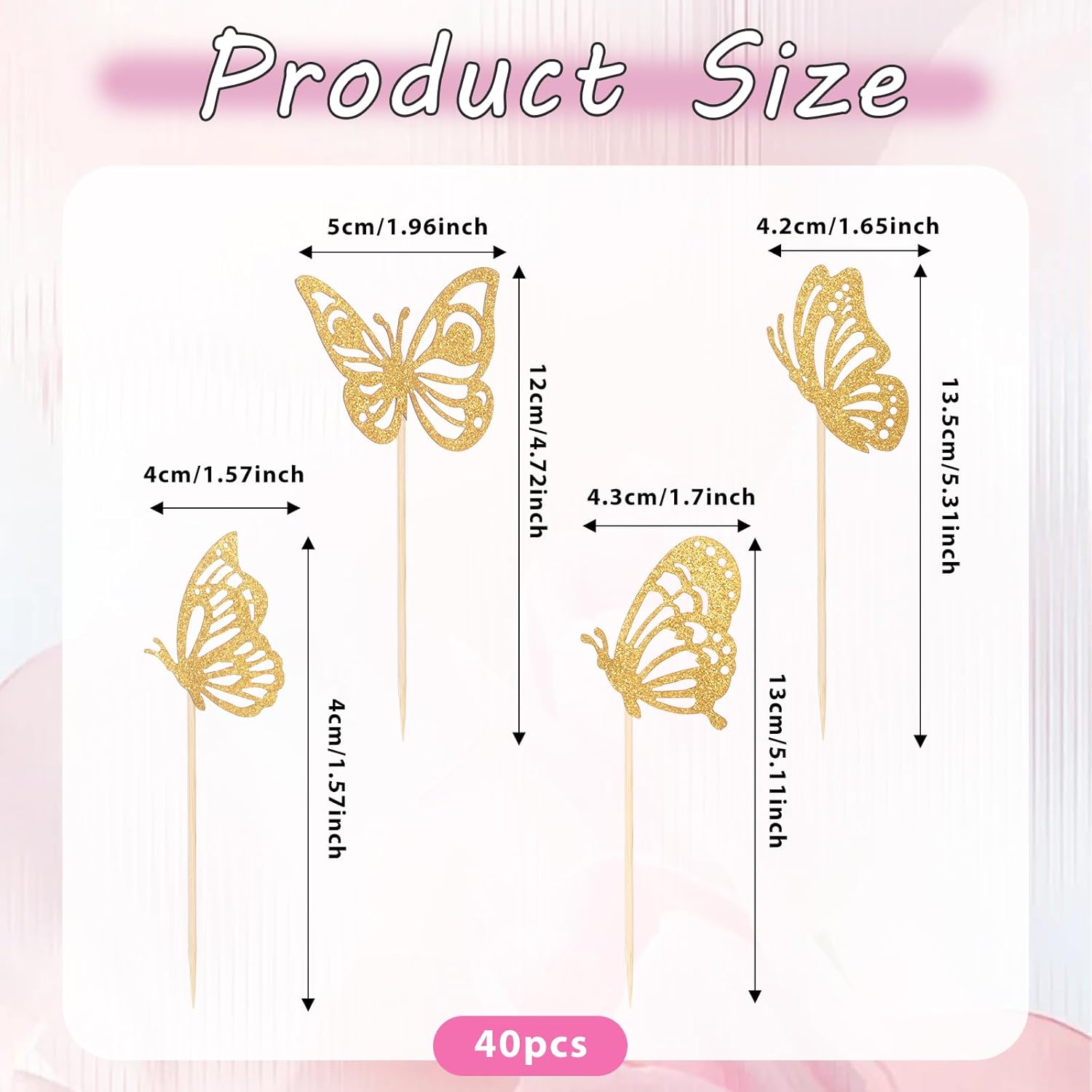 Contenuto della confezione: 40 toppers per cupcake a farfalla volante, con 4 stili diversi e stili diversi per soddisfare le diverse esigenze di decorazione, rendendo la torta più deliziosa Materiali affidabili: questi toppers per torta a farfalla dorata sono realizzati in cartoncino glitterato e stuzzicadenti di alta qualità, che possono essere decorati in modo sicuro con torte, cupcakes, gelati e altri cibi a tavola, offrendoti una festa di cibo Design unico: questi toppers per cupcake a farfalla sono molto carini. Usiamo l'aspetto delle farfalle volanti, che sono vivaci e danzanti. I toppers cupcake a forma di farfalla dorata con glitter possono attirare l'attenzione non appena arrivano, rendendo la tua famiglia e i tuoi amici pieni di complimenti. Nessun assemblaggio richiesto: questi toppers per torta con farfalle dorate sono preassemblati da noi in uno solo con cartoncino a farfalla e bastoncini di legno. Quando ricevi la merce, puoi inserirla direttamente nei cupcake, riducendo così tempo inutile e sprechi di energia. Ampia applicazione: questi toppers cupcake sono molto adatti per vestire vari cibi in feste a tema dessert, feste a tema, feste a tema matrimonio e feste a tema compleanno, creando forme uniche, rendendoli più delicati e deliziosi, con grande fascino, portando più divertimento alla tua festa