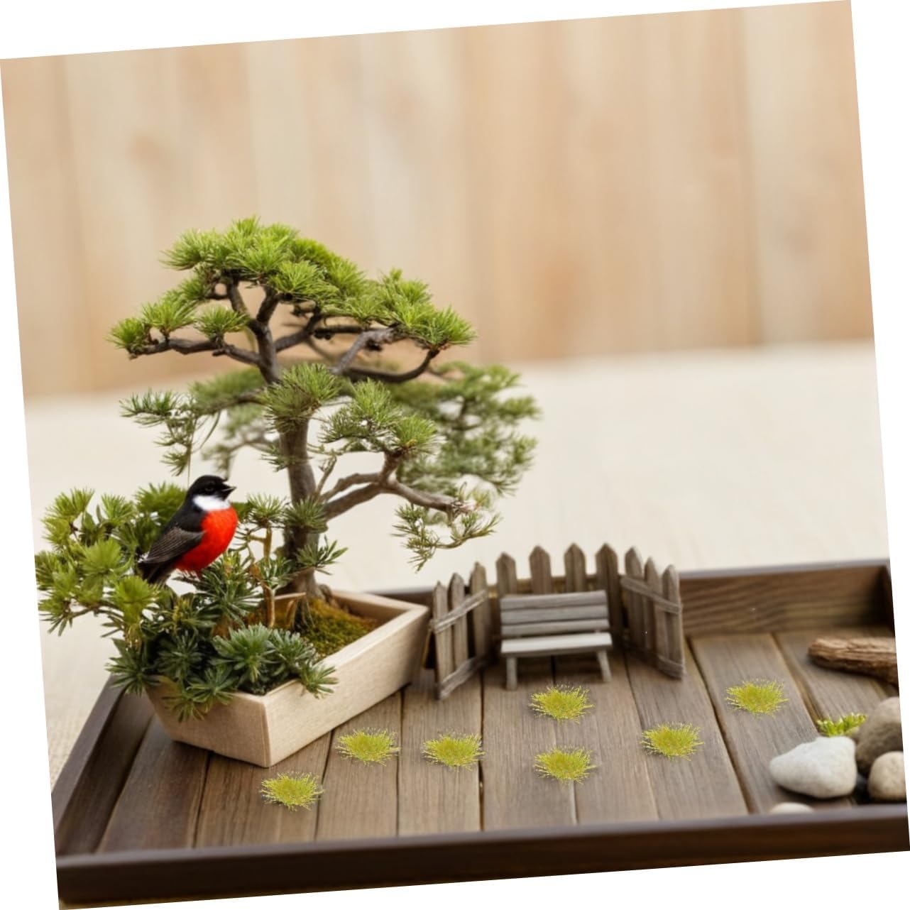 Materiale per scenari in miniatura: progettati per un facile utilizzo, questi ciuffi d' consentono di creare paesaggi in miniatura dettagliati con il minimo sforzo e il massimo impatto Ciuffo di statica realistico: la consistenza finemente dettagliata e i toni verdi naturali di questi ciuffi di conferiscono autenticità ai tuoi progetti di micropaesaggi fai da te Adesione affidabile: dotati di un forte supporto adesivo, questi ciuffi rimangono saldamente in posizione, garantendo che i tuoi modelli rimangano intatti durante la manipolazione o l'esposizione Utilizzo multiuso: adatti per case delle bambole, modellismo ferroviario o costruzione di terreni, questi ciuffi d'erba si adattano a un'ampia di applicazioni creative Design salvaspazio: compatti e leggeri, questi ciuffi d' sono perfetti per gli hobbisti che cercano materiali eccellenti senza occupare spazio di archiviazione