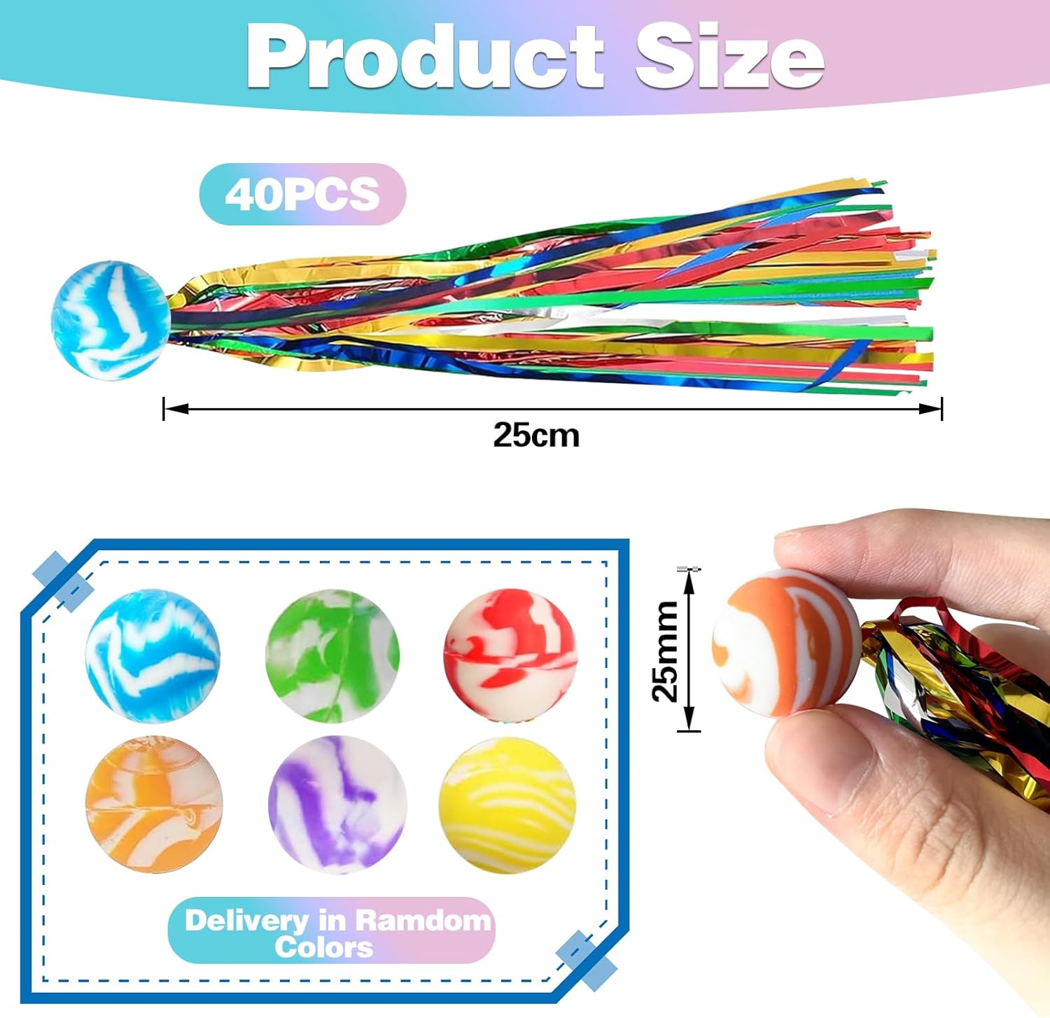 【Varietà nel set】40 pezzi di palline gonfiabili con nastri colorati per soddisfare una varietà di esigenze. 【Materiale di alta qualità】 Le nostre palline gonfiabili sono realizzate in gomma di alta qualità, leggera, resistente e non tossica. Sicurezza e qualità per i vostri bambini. 【Migliorare la coordinazione】I bambini possono esercitare i muscoli della mano, la coordinazione occhio-mano e la destrezza quando giocano con le palle gonfiabili. Far rimbalzare la palla richiede una certa forza e destrezza, contribuendo a migliorare la coordinazione del bambino. 【Facile da trasportare】Ogni palla ha un diametro di 25 mm e la fascia dorata è lunga circa 25 cm. Questo la rende ideale per i bambini e può essere utilizzata sia in casa che all'aperto. 【Varietà di usi】Perfetto per feste di compleanno per bambini, lotterie, regali per hostess, ritorno a scuola e come grande regalo per ragazzi e ragazze.