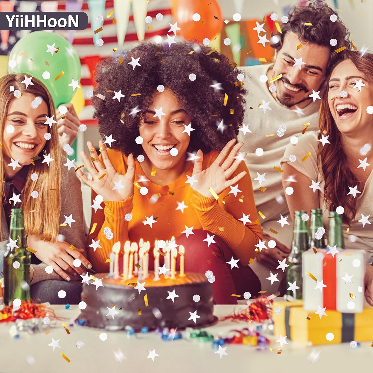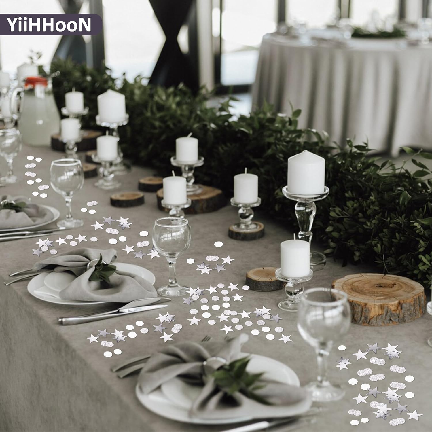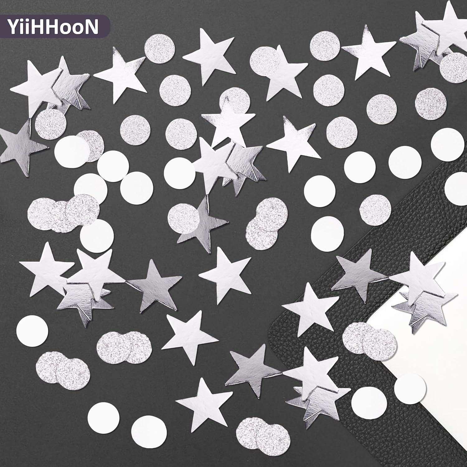 Quantità abbondante: Riceverete 400 pezzi di coriandoli glitterati d'argento in forme a stella e rotonde, i coriandoli rotondi hanno 2 stili; quantità sufficiente, avrete un sacco per le vostre esigenze di festa Liscia e lucida: Questa set di decorazioni tavolo compleanno è fatta di carta, liscia e lucida; può essere riutilizzata, cospargendo i coriandoli sul tavolo, per rendere più vivace la tavola da pranzo Decorazioni accattivanti: La coriandoli rotondi con coriandoli a stella misura 2x2 cm/0.8x0.8 in, i coriandoli rotondi sono 1x1 cm/0.4x0.4 in, è possibile mescolare e abbinare queste forme Esperienza di festa impressionante: Utilizzate le nostre coriandoli stella come decorazioni da tavola; personalizzate i vostri festeggiamenti e lasciate un'impressione indimenticabile ai vostri ospiti Create un'atmosfera conviviale: Cospargete queste coriandoli carnevale su tavoli e piatti, usatele come riempimento di scatole regalo e bottiglie di vetro, sacchetti regalo, decorate tavoli e molto altro ancora