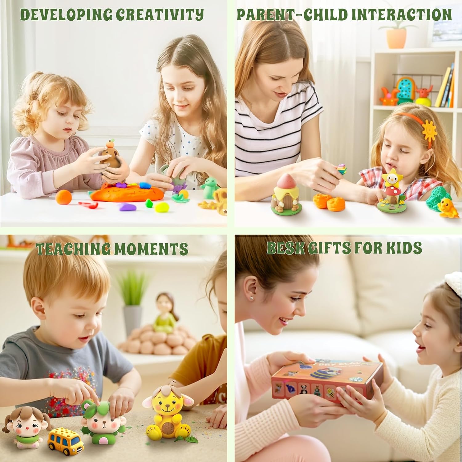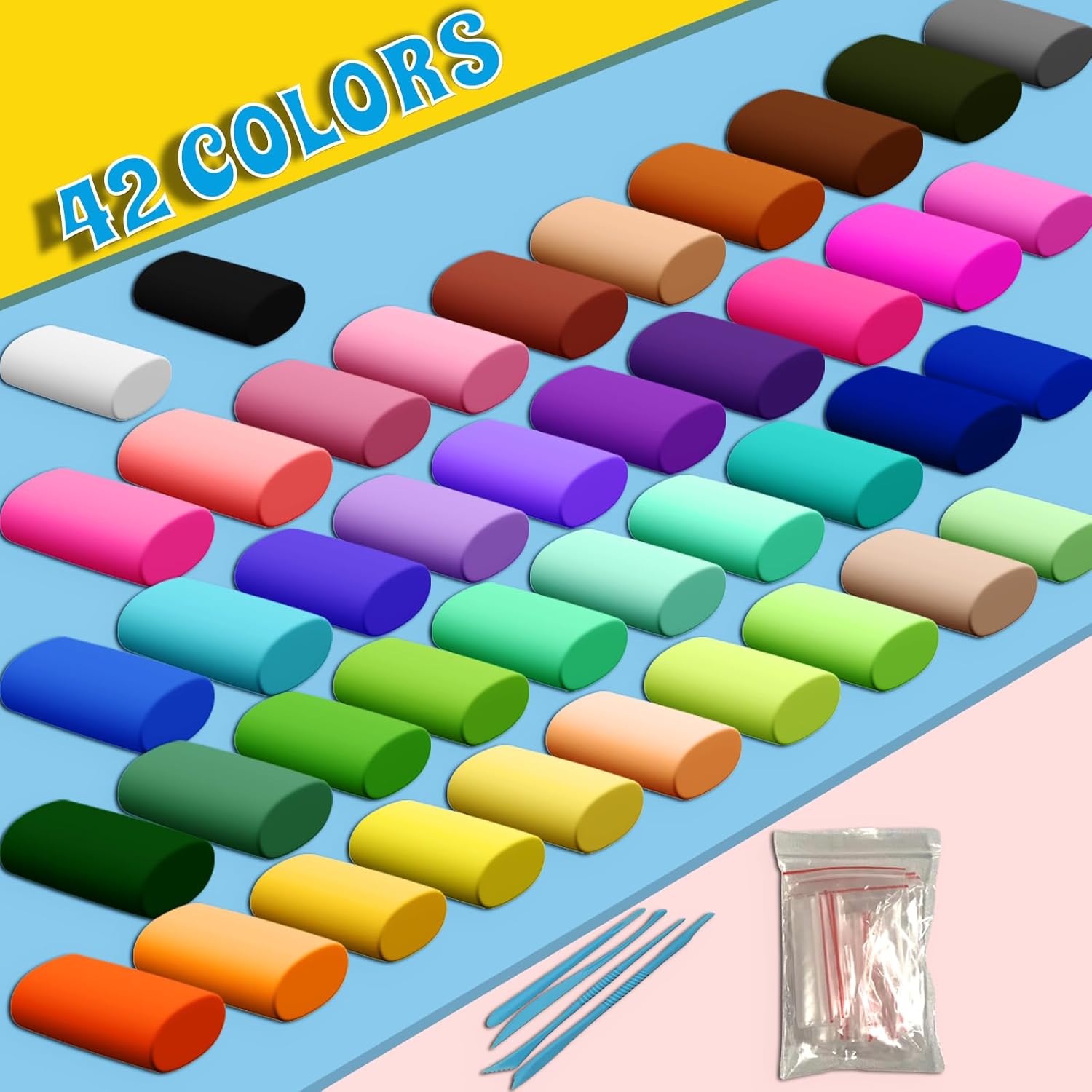 Prezioso set di plastilina: questa pasta da modellare asciuga all'aria contiene 42 diversi colori di pasta modellabile, 4 strumenti per modellare e 20 sacchetti sigillati. Questa pasta da modellare è super morbida, super leggera e non appiccicosa. Puoi anche combinarli secondo necessità per ottenere il colore desiderato. Il tuo bambino può giocare per ore, il che è una grande esperienza Sicuro e non tossico: l'argilla da modellare fatta a mano per bambini è sicura e non tossica, ecologica, non ha cattivo odore e si sente bene. È adatto per bambini e tutti i tipi di appassionati di artigianato, in modo da poter godere del divertimento della creazione proteggendo allo stesso tempo la salute di te e della tua famiglia. Nota: conservare la massa in un sacchetto con cerniera dopo ogni utilizzo, in modo che non si secchi troppo Facile da modellare: questa massa ha una consistenza fine e morbida, facile da strofinare, allungare e modellare e può facilmente modellare una varietà di motivi fini e forme tridimensionali. Basta asciugare all'aria, non è necessario cuocere in forno. I bambini possono facilmente modellare e creare qualsiasi disegno Educazione dei bambini: questa pasta modellabile può stimolare l'immaginazione e la creatività dei bambini, aiutarli a sviluppare le capacità motorie, migliorare la coordinazione occhio-mano e promuovere la concentrazione Multiuso: questa pasta da modellare è adatta per bambini, adulti e principianti per creare piccole decorazioni, cibo, verdure, ciambelle, hamburger, fiori, modelli di animali, ecc. È molto adatto per la progettazione di aule, attività quotidiane, feste di compleanno e l'interazione genitore-figlio. Può essere utilizzato come regalo di compleanno per bambini, regalo di Natale, regalo di Pasqua, ecc