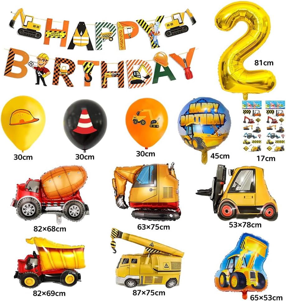 【Decorazione per il 2° compleanno di Bagger Kids】1 palloncino in foil con numero "2" di circa 81 cm, 6 palloncini in foil di alluminio grandi (macchina con pompa di cemento, carrello elevatore, gru, escavatore, macchina fangosa, bulldozer), 2 palloncini in foil di buon compleanno per camion di ingegneria, palloncino in foil, palloncino in foil, palloncino in foil, Bullass 1 bandiera di buon compleanno, 30 palloncini colorati con motivi, 2 adesivi da cantiere e 2 rotoli. 【Palloncino per il 2° compleanno di alta qualità】 I nostri palloncini sono realizzati in lattice naturale e materiali in foglio di alluminio modificato, adatti per aria ed elio, durevoli e riutilizzabili. (Non riempire il palloncino ed evitare scottature, oggetti appuntiti e attrito eccessivo.) 【Facile da montare】 I palloncini di carta hanno cuciture e anelli di saldatura e possono essere semplicemente legati nella posizione desiderata con corda o filo. Non devi spendere molto tempo per immaginare combinazioni decorative, i nostri set di decorazioni per palloncini per auto da costruzione sono disponibili in una varietà di stili per soddisfare le tue esigenze decorative. 【Perfetto per il 2° compleanno dei ragazzi】 Le decorazioni di compleanno di Bagger sono perfette per le feste di compleanno dei ragazzi e danno loro una popolare decorazione a tema architettonico. Il perfetto set di decorazioni per escavatore conquisterà il cuore di bambini e ospiti, la nostra decorazione di compleanno per escavatore è una buona scelta per creare un'atmosfera felice! 【Ampia applicazione】 Palloncino di compleanno gigante dell'autopompa antincendio, puoi organizzare un'enorme e unica festa di compleanno dell'escavatore per il tuo bambino, sorprendere i tuoi compleanni, ospiti e amici. Può essere utilizzato anche per i compleanni, come supporto fotografico, decorazione o accessorio.