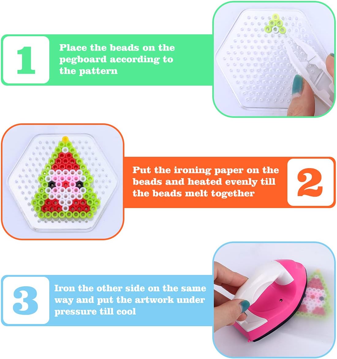 🎄【Perline da stirare kit completo】Perline a fusione set include perline di fusibile ad acqua da 5 mm di 4300 pezzi in 24 colori, 3 x grande pegboard, 1 x carta da stiro, 2 x fermagli Per Capelli, 4 x portachiavi, 1 pinzetta ecc., ci sono abbastanza perline e accessori per progettare diverse opere d'arte, che stimolano notevolmente la tua creatività e immaginazione.Set di perline artigianali multicolori adatto a partire dai 5 anni. 🌸【Materiale sicuro e non tossico】Perline da stirare realizzato con materiali EVA in plastica alimentare al 100% di alta qualità e rispettosi dell'ambiente. È completamente sicuro e adatto ai bambini, nessun danno per la salute, con istruzioni dettagliate per il miglior utilizzo, i bambini possono progettare con fiducia. 🚗【Facilita di realizzare la creazione】Posiziona le perline da stirare con le pinzette sulla pedana e segui la scheda del modello. Metti la carta da stiro sulla parte superiore delle perline e stira delicatamente fino a quando le perline si sciolgono insieme. Gira il disegno per stirare laltro lato, quindi attendi fino a quando non si raffredda. (NOTA: il ferro da stiro non è incluso nella confezione.) 🚞【Lavori dartigianato per bambini】Perline plastica da stirare ad essere un'attività molto divertente, che terrà i bambini impegnati per ore. Durante il gioco, perline stirare kit migliora la comprensione dei bambini del mondo 2D e 3D, arricchisce l'immaginazione e la creatività dei bambini. Può anche sviluppare la capacità artigianale dei bambini e la cognizione dei colori. 💖【Molteplici applicazioni】Le perline a fusione possono essere utilizzate per tutti i tipi di lavoretti. è possibile utilizzarli per fare ornamenti per capelli, bigiotteria, giocattoli dei cartoni animati, degli splendidi sottobicchieri, dei carinissimi portachiavi, dei braccialetti e delle collaninepiccoli ciondoli e progetti artigianali, ecc. Un buono regalo per i vostri figli e le famiglie nei giorni festivi come compleanni, Natale, ecc.