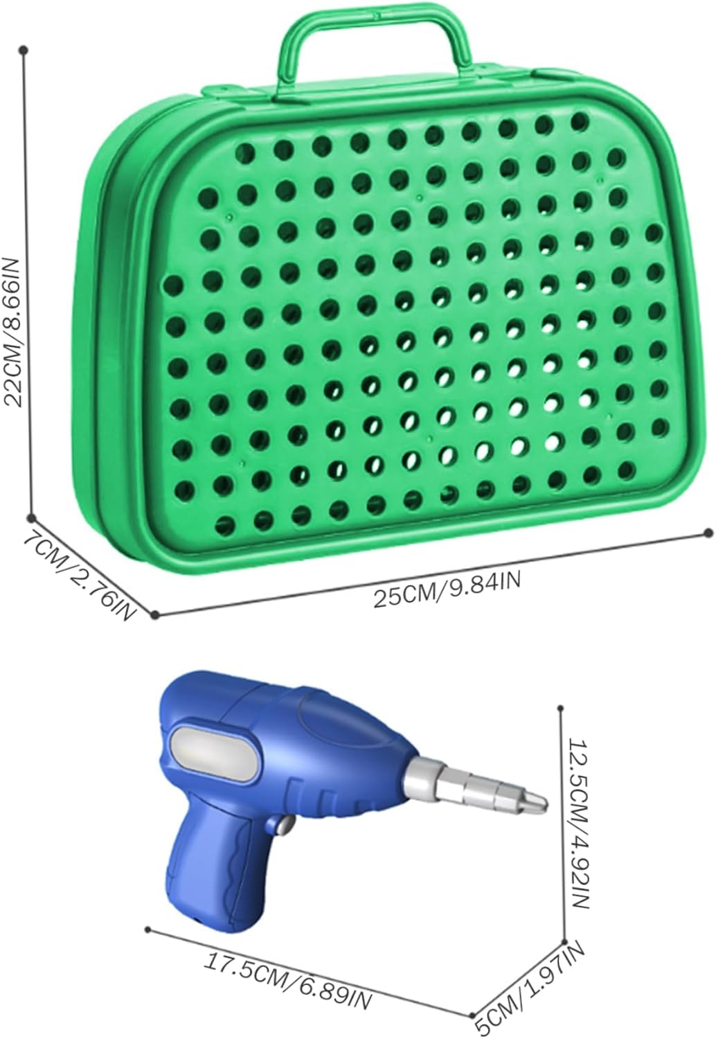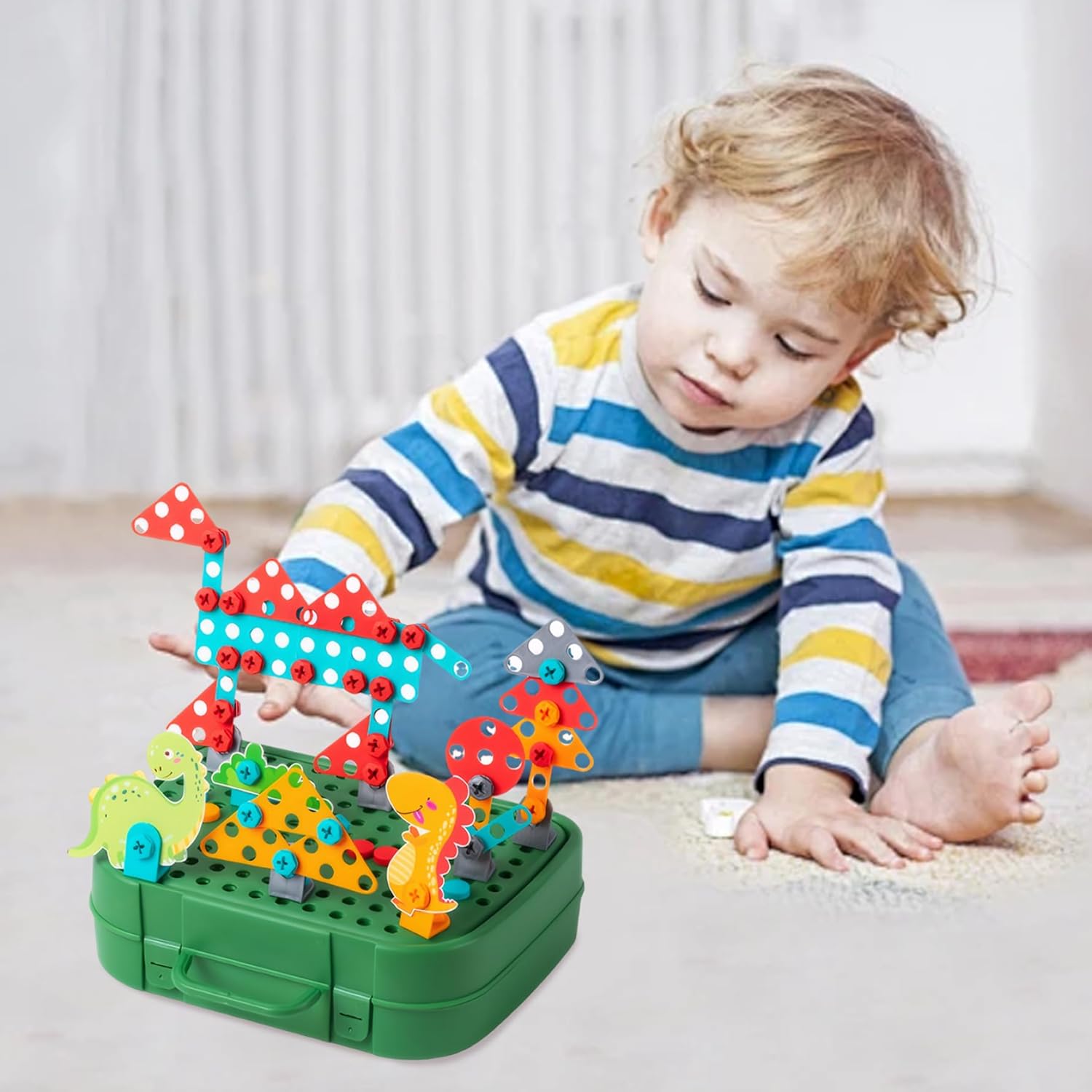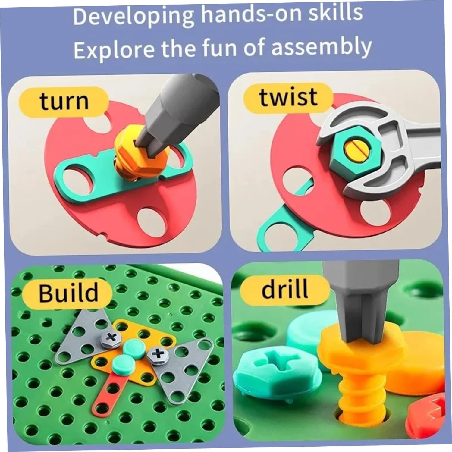 Sviluppa abilità logiche: il set di mosaico con trapano è perfetto per aiutare il tuo piccolo ingegnere a fare un salto nelle abilità logiche!.Ogni set di trapani e viti per bambini massimizza la consapevolezza spaziale, la risoluzione dei problemi logici, la visualizzazione e la pianificazione, le capacità motorie e centinaia di altre abilità cognitive di base attraverso la costruzione di giocattoli! Cassetta degli attrezzi magica per bambini: il set di trapani per bambini include un cacciavite giocattolo, una chiave inglese divertente e un trapano elettrico realistico!.Guarda come crescono in sicurezza, imparando ad allacciare, smontare e completare compiti utili da soli!.Adatto a bambini dai 3 ai 10 anni. Perfetto per i bambini: stai cercando qualcosa di emozionante?.Se è così, adorerai questa cassetta degli attrezzi creativa..Questo giocattolo può portare molto divertimento ai bambini ed è una vacanza squisita per Natale, Halloween, Ringraziamento, compleanni e altro ancora! Materiali affidabili: il nostro set di punte per mosaico Creativity è realizzato in plastica ABS di lunga durata con bordi lucidi..Il trapano giocattolo è alimentato da batterie AA (non incluse), a bassa velocità, garantendo l'assenza di danni ai bambini. Set di puzzle dal design creativo a mosaico: il set di punte e viti da 450 pezzi combina educazione e intrattenimento, consentendo ai bambini di esplorare i principi dell'ingegneria edile mentre giocano..Usa il trapano elettrico e il cacciavite per progettare e costruire i tuoi modelli fantasiosi combinando vite e dado.