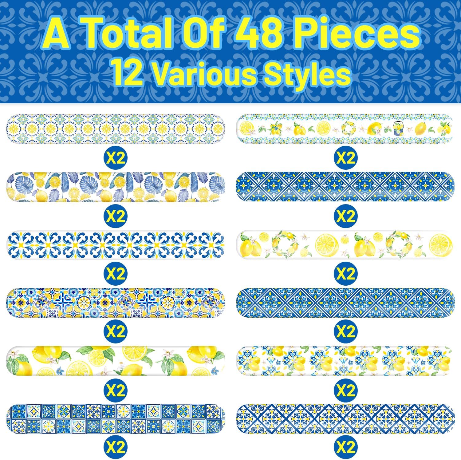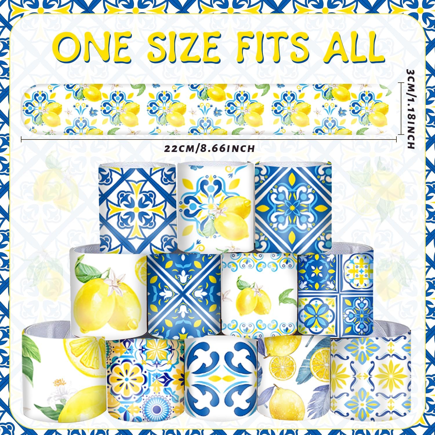 Contenuto della confezione: riceverai 48 braccialetti a tema capri limone in 12 stili, 4 pezzi di ogni stile; la dimensione dei regali capri limone è di circa 3 x 22 cm, questi braccialetti sono stampati con più motivi a tema limone capri. Con una varietà di stili, c'è qualcosa per tutti Design innovativo: questi braccialetti schiaffeggianti sono progettati con stampe gialle capri limone e giallo blu, con colori vivaci e motivi squisiti, adatti per i bambini come premi in classe, premi di gioco. Queste decorazioni per feste al limone Capri adottano uno stile divertente e vivace, che catturerà sicuramente i cuori dei bambini e saranno regali a sorpresa per te, amici, bambini e studenti Decorazioni per feste di compleanno al limone: questi braccialetti sono stampati in alta definizione, con disegni chiari e luminosi a tema limone capri che non ti annoieranno mai. Sono un regalo ideale per gli appassionati di limone e porteranno sicuramente sorrisi e gioia a qualsiasi festa, che si tratti di una festa di compleanno o di una festa a tema limone Capri. Questi divertenti accessori si distinguono e renderanno il vostro evento indimenticabile Durata: questi braccialetti a tema capri limone all'interno sono realizzati in metallo resistente, l'esterno è stato avvolto con materiale PVC di buona qualità, non facile da rompere o deformare, facile da usare e sicuro, può essere utilizzato per un lungo periodo di tempo Ampia gamma di applicazioni: i braccialetti Capri Lemon sono molto adatti per bomboniere capri limone, decorazioni per feste al limone Capri, decorazioni di compleanno al limone, riunioni di famiglia, omaggi per la festa dei bambini, premi in classe e altro ancora, anche molto attraenti per l'uso quotidiano e graziosi accessori per gli amanti del limone Capri