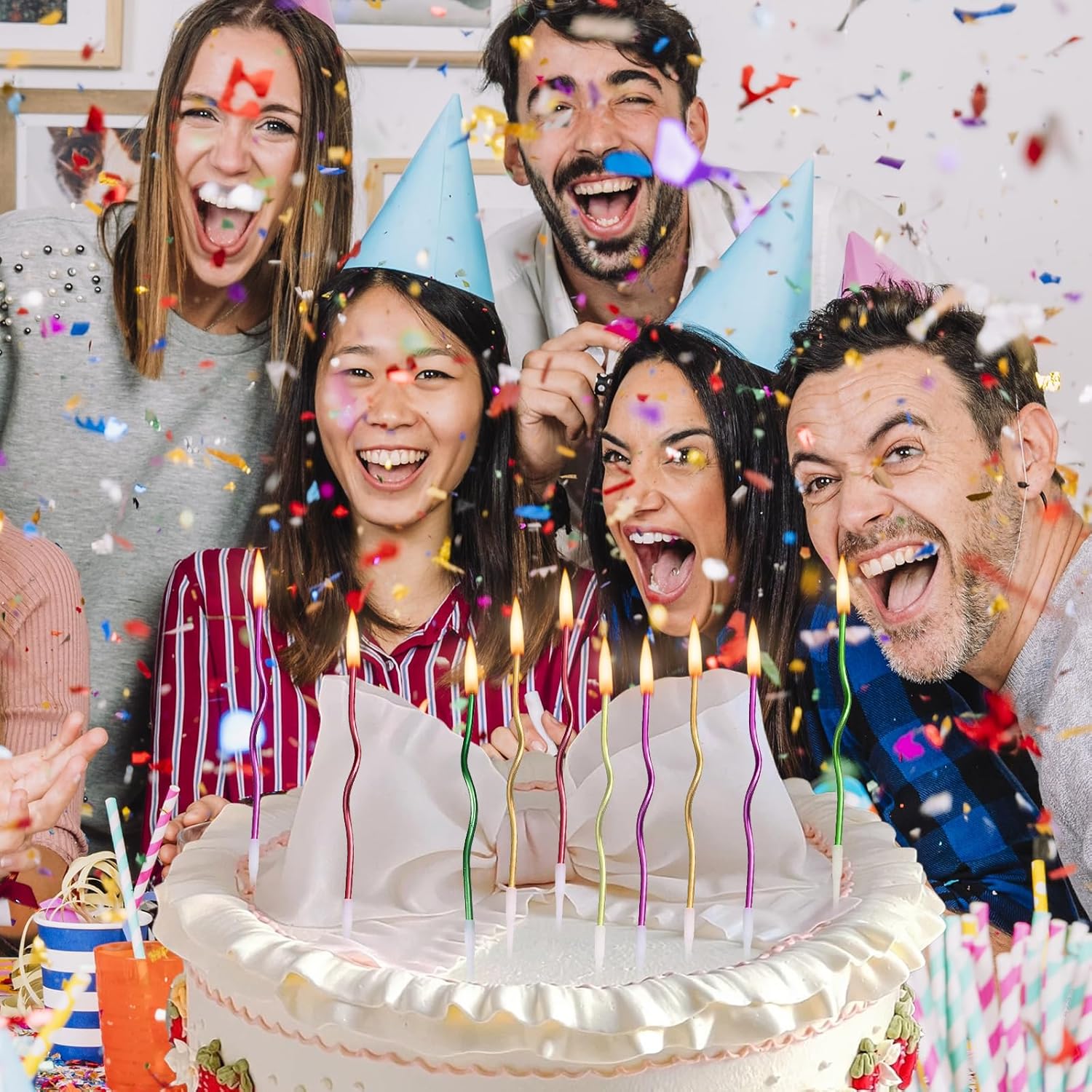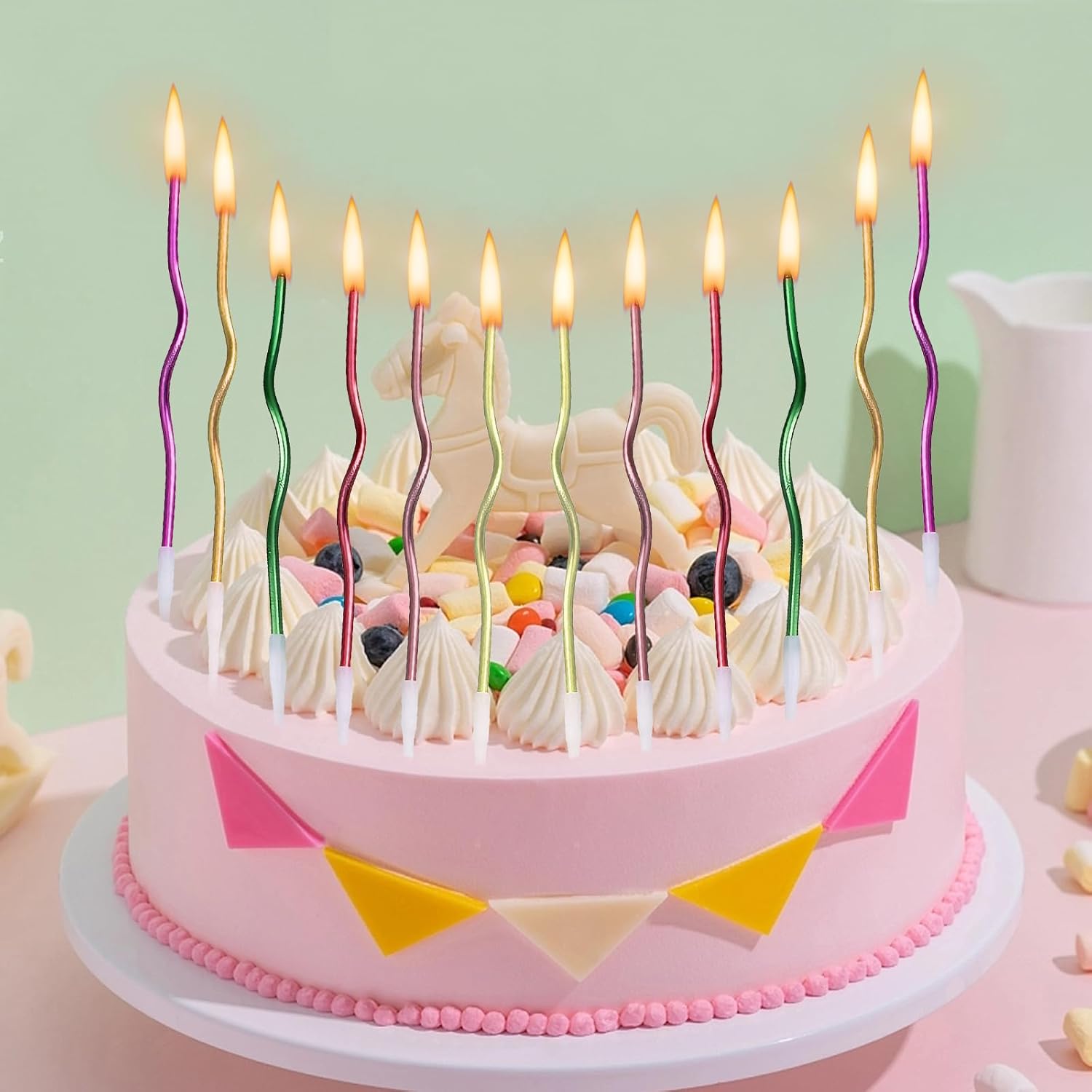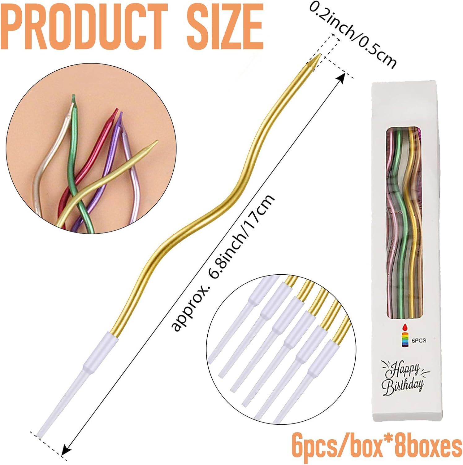 Contenuto della Confezione: Fornisce 8 Scatole da 48 Set di valore super per soddisfare le tue esigenze per più feste di compleanno o grandi feste. Non devi più preoccuparti che il numero di candele compleanno non sia sufficiente, Che si tratti di una piccola festa di compleanno in famiglia o di un felice ritrovo tra amici, Questo set di candeline può facilmente farcela, Aggiungendo un'atmosfera calda a ogni momento del compleanno. Materiali Sicuri: Candele Compleanno è realizzato con materiali sicuri e affidabili, Senza odore o fumo nero durante la combustione, Garantendo la salute e la sicurezza di te, della Tua famiglia e dei tuoi amici quando ti godi la gioia dei compleanni. Puoi accendere candeline con sicurezza, Esprimere un desiderio e spegnerlo senza preoccuparti della generazione di gas nocivi, Creando un ambiente puro e sano per le feste di compleanno. Design Unico: Candela compleanno ha una forma unica con curve morbide, Rompendo la monotonia delle tradizionali candele dritte. Luminoso e colorato con una varietà di colori, Aggiungendo colori più splendidi alle feste di compleanno. La lunghezza di circa 15,5 cm può continuare a bruciare stabilmente dopo essere stata accesa, Rendendo il momento dei desideri più cerimoniale. Fissaggio della Staffa: Ogni candeline compleanno è dotato di una staffa bianca stabile, Comoda da inserire in torte e altri alimenti e non facile da ribaltare, Così puoi sentirti più a tuo agio quando esprimi desideri e soffi candeline lunghe compleanno sottili. La combinazione perfetta della staffa e della candela garantisce la stabilità della candela senza comprometterne la bellezza complessiva, Offrendo praticità e protezione per le feste di compleanno. Scenario Applicativo: Questa candele lunghe non è adatta solo per i compleanni di adulti e bambini, Ma anche per i compleanni di animali domestici. È anche adatto come decorazione per torte per varie occasioni come anniversari, Feste di pensionamento, Riunioni di famiglia, Feste, Ecc. È un must per squisite torte da festa, Che ti regaleranno ricordi indimenticabili e significativi