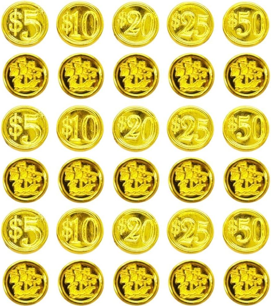 Queste monete sono perfette per giocare a una festa. Mettile in scrigno del tesoro e festa sarà sicuramente più bella di sempre. Puoi anche far giocare i tuoi ospiti a una caccia tesoro con queste fantastiche monete d'oro. Crea una mappa e lascia che trovino il tesoro che regalerà ore e ore di divertimento bambini. Puoi anche usarle come fiches poker o per qualsiasi altro gioco con soldi veri. Le possibilità sono infinite. Bomboniere perfette per feste a tema pirata, feste di Halloween, feste di compleanno, caccia tesoro, caccia tesoro, carnevale o pignatte, usare come fiches gioco, oggetti di scena, centrotavola, decorazioni per feste, scrigno del tesoro, gioielli del tesoro, . Ottimi regalini per le feste in qualsiasi periodo 'anno, o come regalo di Natale per un divertimento natalizio. Sono divertenti infilare nei sacchetti regalo e aggiungeranno un tocco fantastico baule dei premi della tua classe. PERFETTO PER: Feste a tema, celebrazioni, bomboniere, riempitivi per sacchetti regalo e idee regalo per bambini. I bambini adoreranno giocare con questi dobloni pirata in plastica. Includili nei sacchetti regalo alle feste di compleanno!