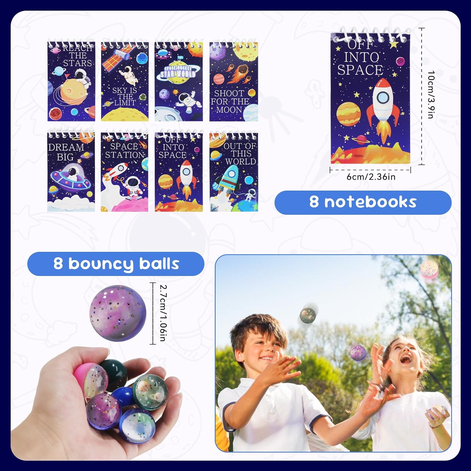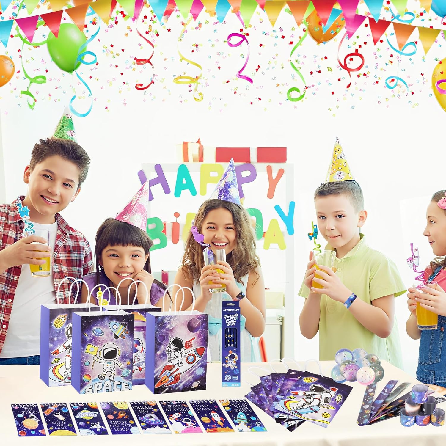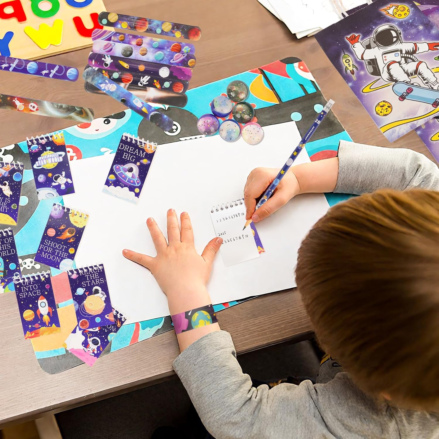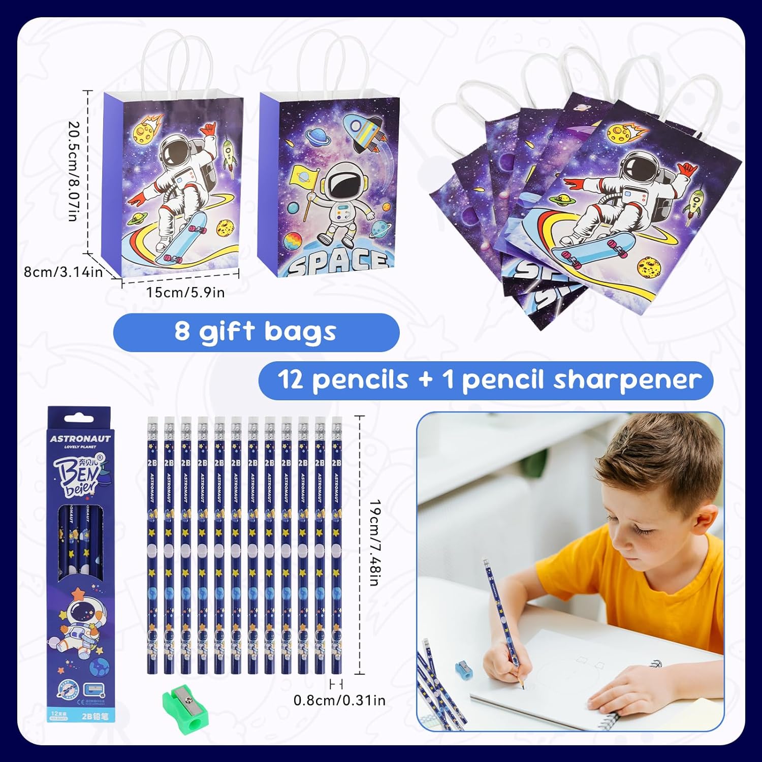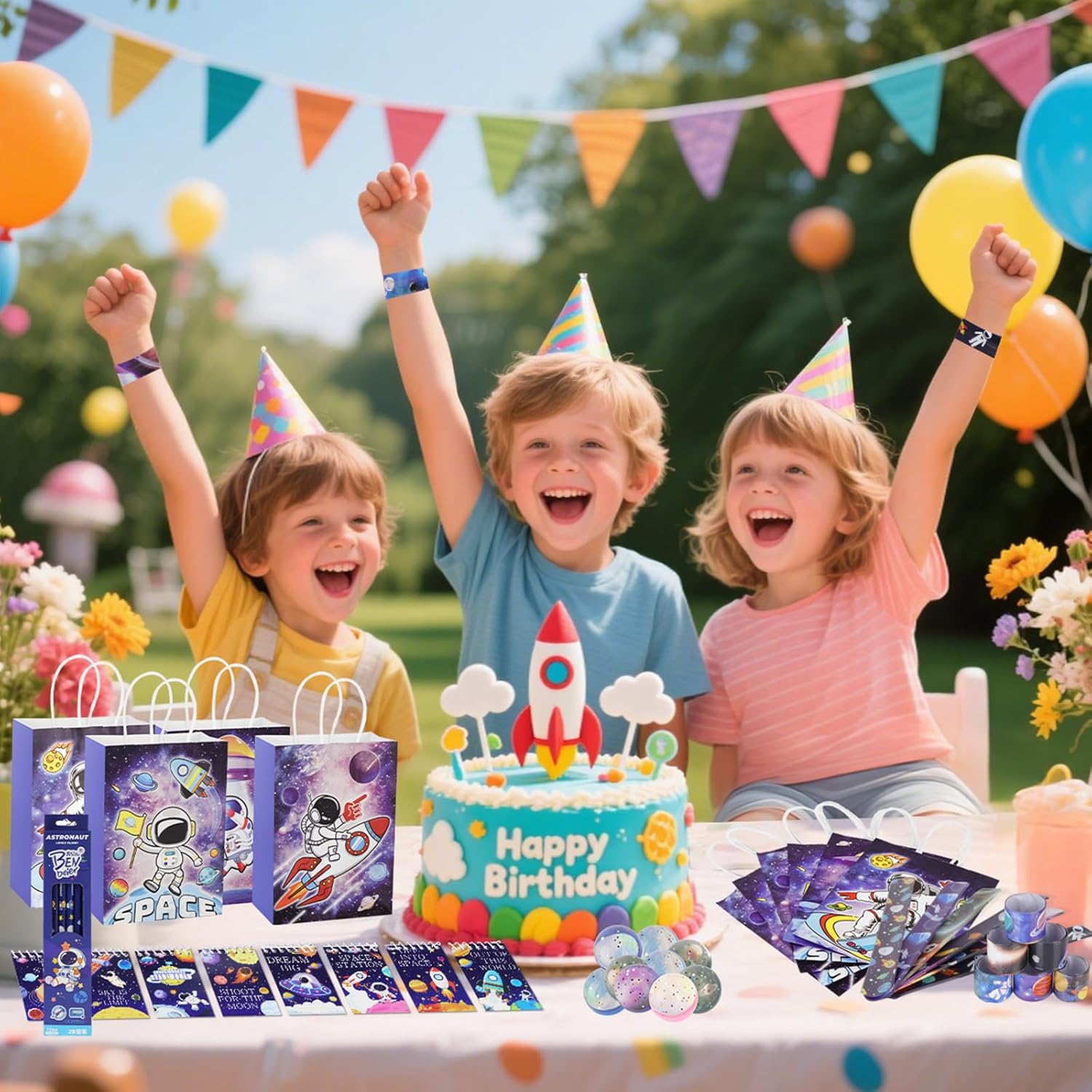 Super Set da 48 Pezzi a Tema Spaziale: Questo giocattoli gadget festa compleanno set include 12 matite, 12 braccialetti slap spaziali, 8 palla elastica con stelle, 8 sacchetti regalo e 8 quaderni con spirale. Set Completo e Pronto all’Uso: Organizzare una festa non è mai stato così semplice! Regali compleanno bambini spazio perfetto per essere suddiviso in regalini individuali o usato come decorazione interattiva per intrattenere i bambini. Materiali Sicuri: Set festa compleanno tema spazio realizzato con materiali resistenti e sicuri per i bambini. I colori vivaci e i motivi spaziali accattivanti catturano immediatamente l’attenzione e rendono ogni elemento del set speciale e unico. Regali Perfetti già Pronti: Set regali compleanno bambini I 8 sacchetti regalo inclusi possono essere facilmente riempiti con i gadget forniti: un’idea pratica e originale per regalini di fine festa o come premi per attività scolastiche. Ideale per Feste di Compleanno e Eventi a Tema: Questo spazio gadget compleanno bambini è perfetto per feste di compleanno, eventi scolastici, premi di classe, giochi a premi, Pasqua, Halloween o Natale.