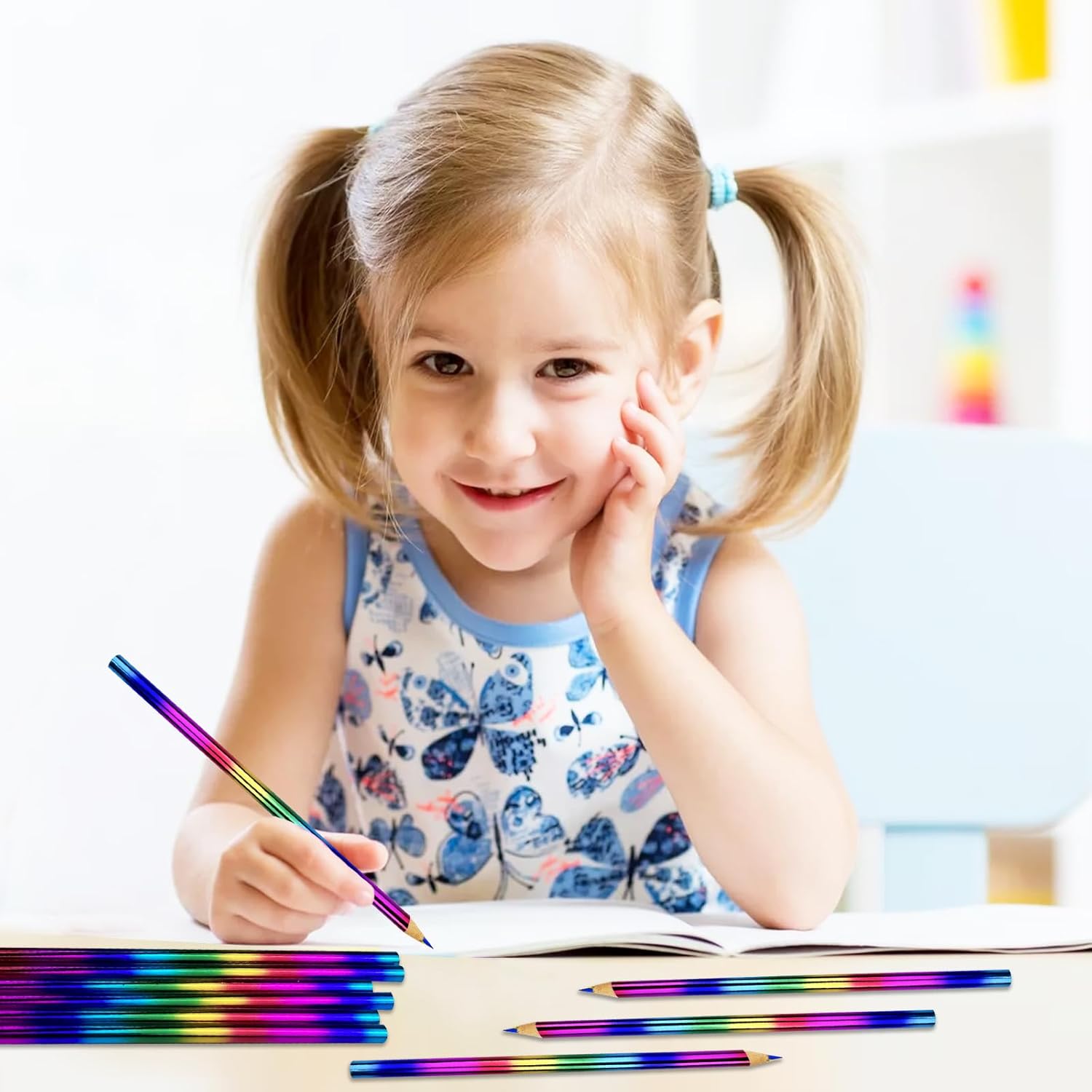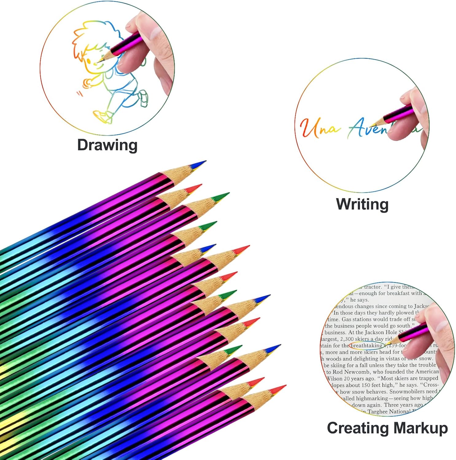 【Matita Colorata Arcobaleno 4 in 1】Questa esclusiva matita colorata multicolore offre nuove possibilità alla tua creazione. Combina abilmente i quattro colori giallo, blu, rosso e verde, che possono presentare colori colorati durante la pittura. 【Sicuro e Durevole】Le penne arcobaleno sono realizzate in materiali ecologici in legno naturale, sicuri per i bambini e piacevoli per l'ambiente. Sono facili da temperare e non facili da rompere, e sono lisce da scrivere o disegnare, adatte ai bambini. 【Facile da Riporre】48 Matite Colorate arcobaleno, tutte matite a testa piatta a doppio taglio, in modo che lo strato di legno avvolga completamente la mina, rendendola non facile da rompere, in modo che le matite siano facili da riporre e possano essere utilizzate a lungo. 【Ampia Applicazione】Il set di Matita Colorati adatto per la pittura artistica, lo schizzo, la colorazione e la scrittura. Può anche essere usato come regalo di compleanno, regalo per feste, premio scolastico, ecc. 【Set di 48 Colori Arcobaleno】Riceverai 48 Pastelli Colorati, sufficienti in quantità e dai colori vivaci. I bambini possono disegnare come preferiscono e divertirsi con la pittura creativa.