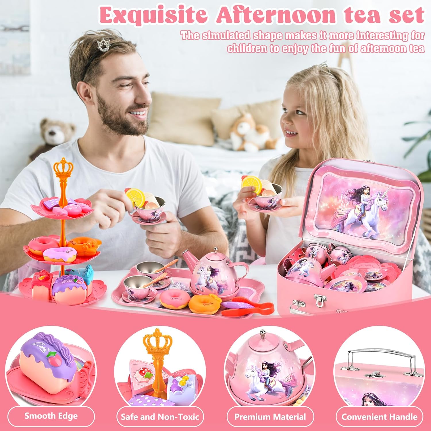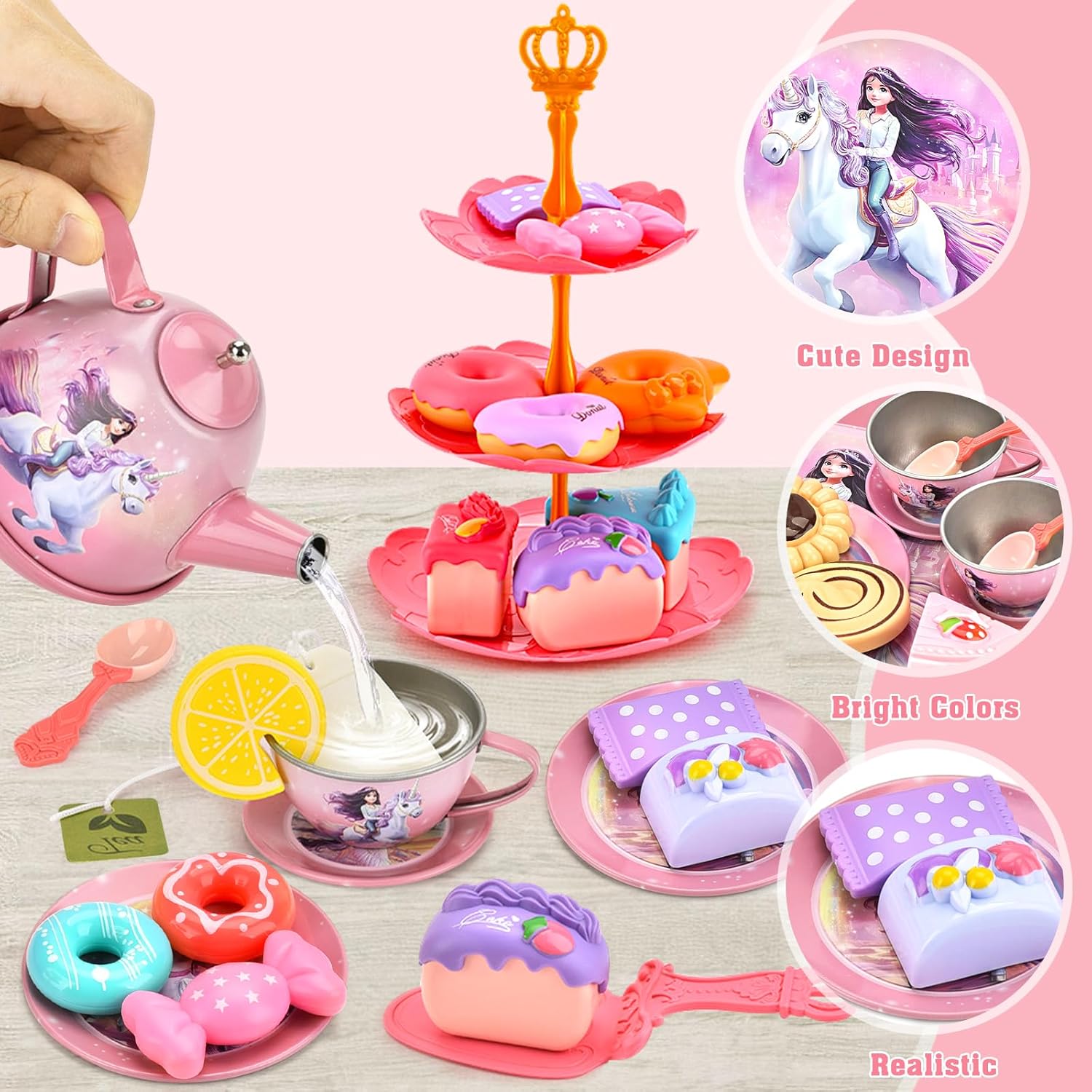 Kit Completo per Tè delle Bambole: Set da 48 pezzi con servizio completo per 4 persone: teiera con beccuccio antigoccia, accessori da cucina come spatola per torte. Perfetto per giochi bambina in cameretta o giardino. Set cucina bambini ideale per giochi di ruolo creativi Sviluppo Motorio e Sicurezza: Giocattolo educativo per bimbe dai 2+ anni. Esercita abilità motorie con fette di limone e versamento liquidi. Materiali atossici certificati. Regalo bambina 5 anni e giochi bambina 3 anni perfetto per prime esperienze nella cucina gioco Portabilità Intelligente: Scatola di stoccaggio si trasforma in tavolino portatile! Trasporta accessori cucina bambini a feste scolastiche, pic-nic o visite ai nonni. Rendere l'ordine divertente è possibile con questo design intelligente Interazione Sociale Realistica: Include 21 dolci iperrealisti (ciambelle/torte) e vassoio torte smontabile. Organizza merende con amichetti nel parco: cibo giocattolo per bambini che stimola condivisione e creatività Compatibilità Universale: Accessorio adattabile a tutte cucine giocattolo standard. Vassoio multilivello crea laboratori pasticceria post-pioggia. Completo di pentoline giocattolo bambina e pentole giocattolo per bambini per gioco collaborativo tra fratelli