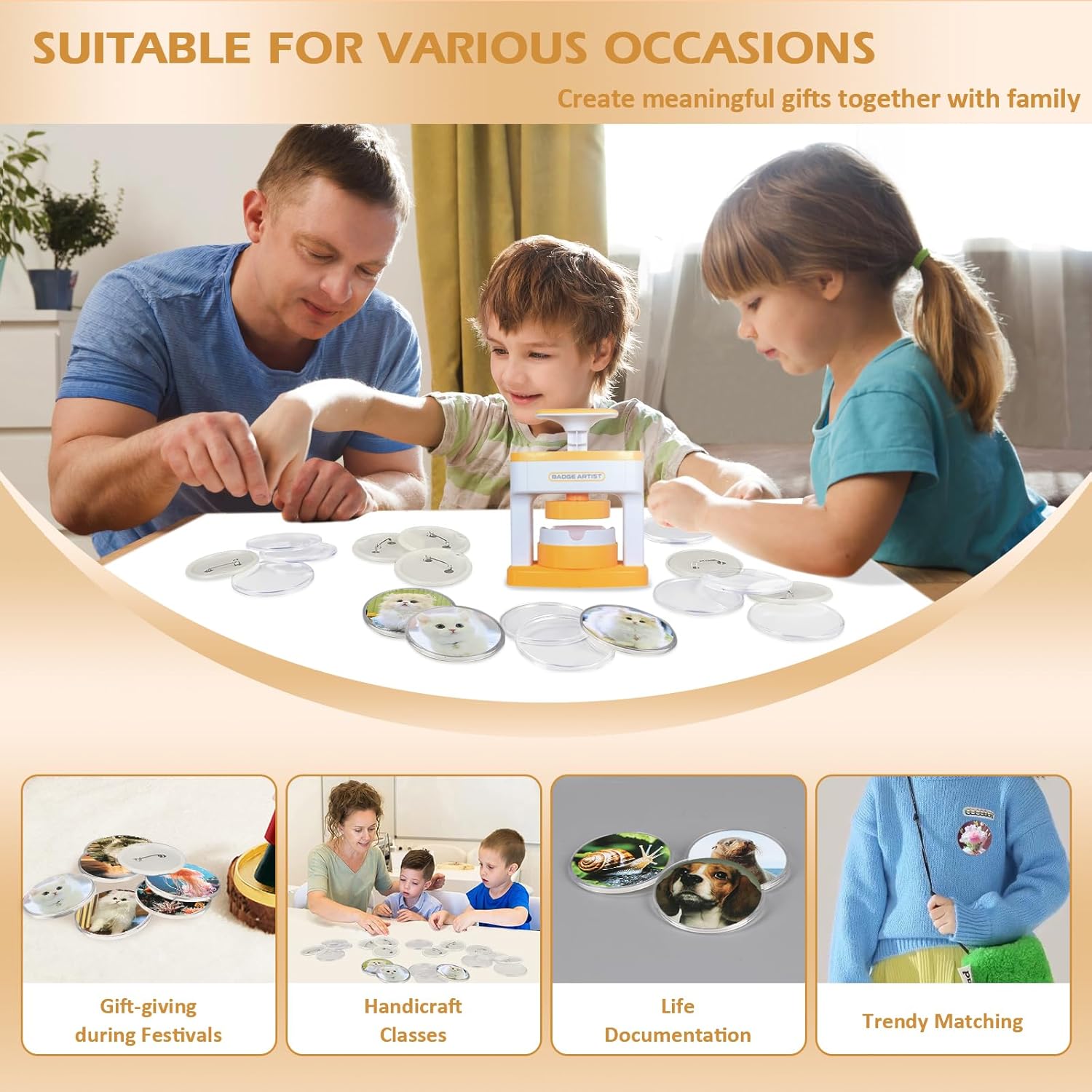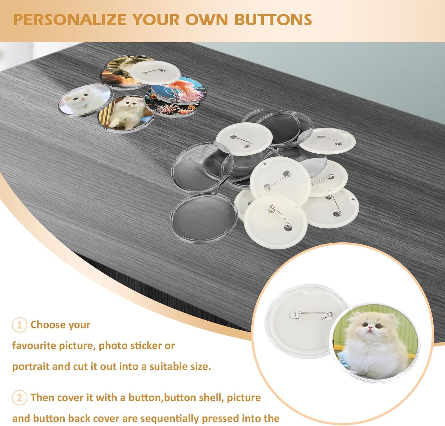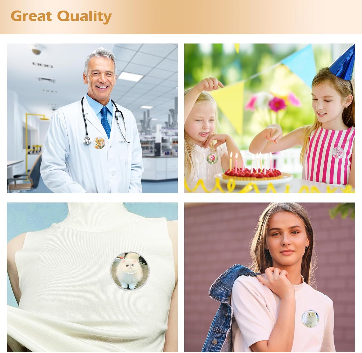 COSA OTTERRAI: Questo set contiene 48 spille e 48 modelli, ogni perno ha un diametro di 55 mm per soddisfare le diverse esigenze di dimensioni. 48 spille personalizzate bambini MATERIALI DI ALTA QUALITÀ: Spille personalizzabili per bambini realizzato in acrilico e metallo, durata garantita del badge e resistenza all'ossidazione, rendi i badge più durevoli e belli. I perni non cadono facilmente e possono essere riutilizzati FAI DA TE CREATIVO: Spille rotonde basi adatto ad ogni occasione, puoi personalizzarli e combinarli a tuo piacimento e creatività per mostrare il tuo stile unico. Spille fai-da-te perfette per l'artigianato, progetti scolastici e come regali di compleanno o di matrimonio FACILE DA INSTALLARE: Rotonde badge spilla bottoni può posizionare l'immagine o il logo tra 2 bottoni distintivi rotondi in plastica vuoti, chiudere il perno con la mano. Sul retro è presente una spilla per attaccare la spilla a medaglione ai vestiti o agli zaini AMPIA GAMMA DI APPLICAZIONI: Personalizzate spille adatto per macchine bottoni Domigard, possono essere utilizzati come badge commemorativi, spille fai-da-te, accessori moda e altro ancora. Si abbina bene anche a cappelli, zaini, vestiti e borse da spiaggia