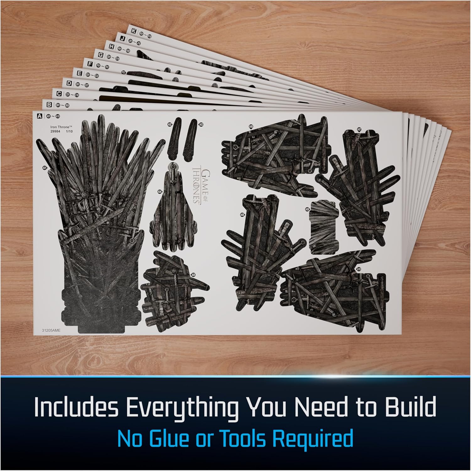 【Replica dettagliata】Intraprendi un epico viaggio di costruzione con un pezzo di Game of Thrones con decorazioni per scaffali accurate. Questo kit modello puzzle 4D Build Iron Throne presenta intricati dettagli di qualità cinematografica e un supporto. 【Facile da montare】 Riceverai 10 fogli di 219 ritagli dettagliati e durevoli e istruzioni per completare questa soddisfacente sfida artigianale. Nessun attrezzo richiesto. PROGETTATO PER L'ESPOSIZIONE: un'autentica aggiunta alla tua collezione di kit modello, ideale per la decorazione della stanza, dell'ufficio e della camera da letto. Questo trono di ferro misura 37,1 x 9,3 x 28,9 cm. ACQUISTA GIOCHI DIVERTENTI - Ti piace il tuo kit modello 4D Build e hai bisogno di più divertimento? I giocattoli e i giochi Spin Master offrono una gamma che va dai giochi per bambini ai giochi da tavolo per adulti, puzzle per adulti e puzzle per bambini. 【Trova il tuo fandom】Trova altri puzzle 3D per adulti come regali per lui, regali per adolescenti, regali per uomini, regali per qualsiasi fan di Marvel, Il Signore degli Anelli, GOT, HOTD, Star Wars, Batman, Harry Potter e altro ancora. Include 10 fogli, istruzioni (potrebbero non essere in inglese) Coperto dall'impegno Spin Master Care. Vedi sotto per i dettagli completi