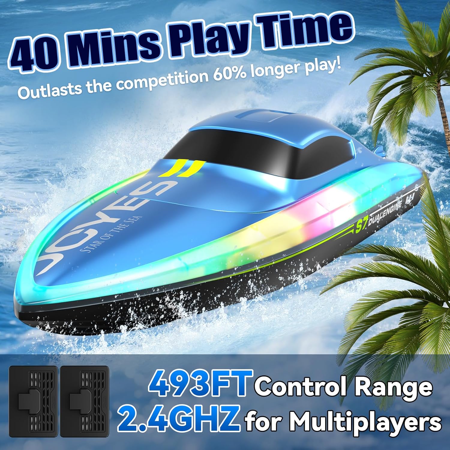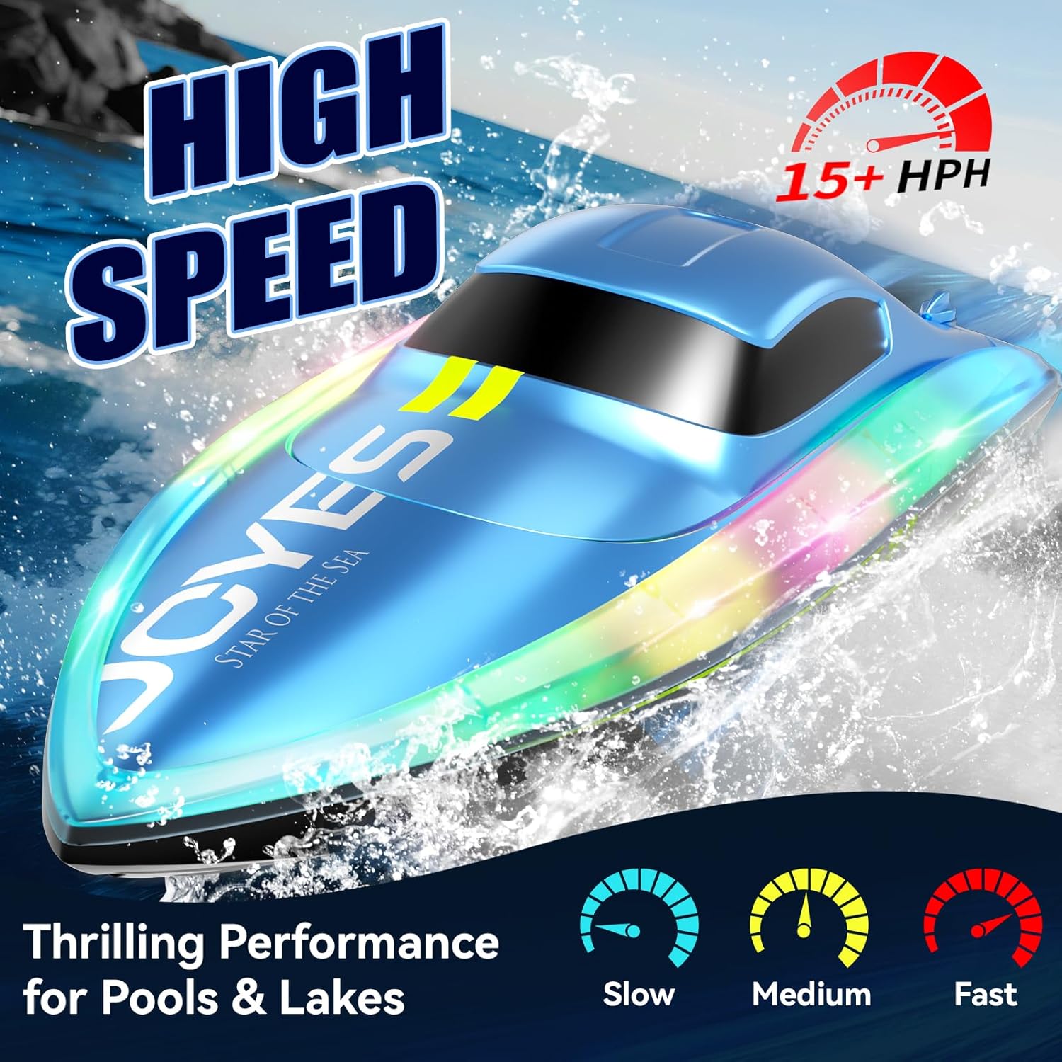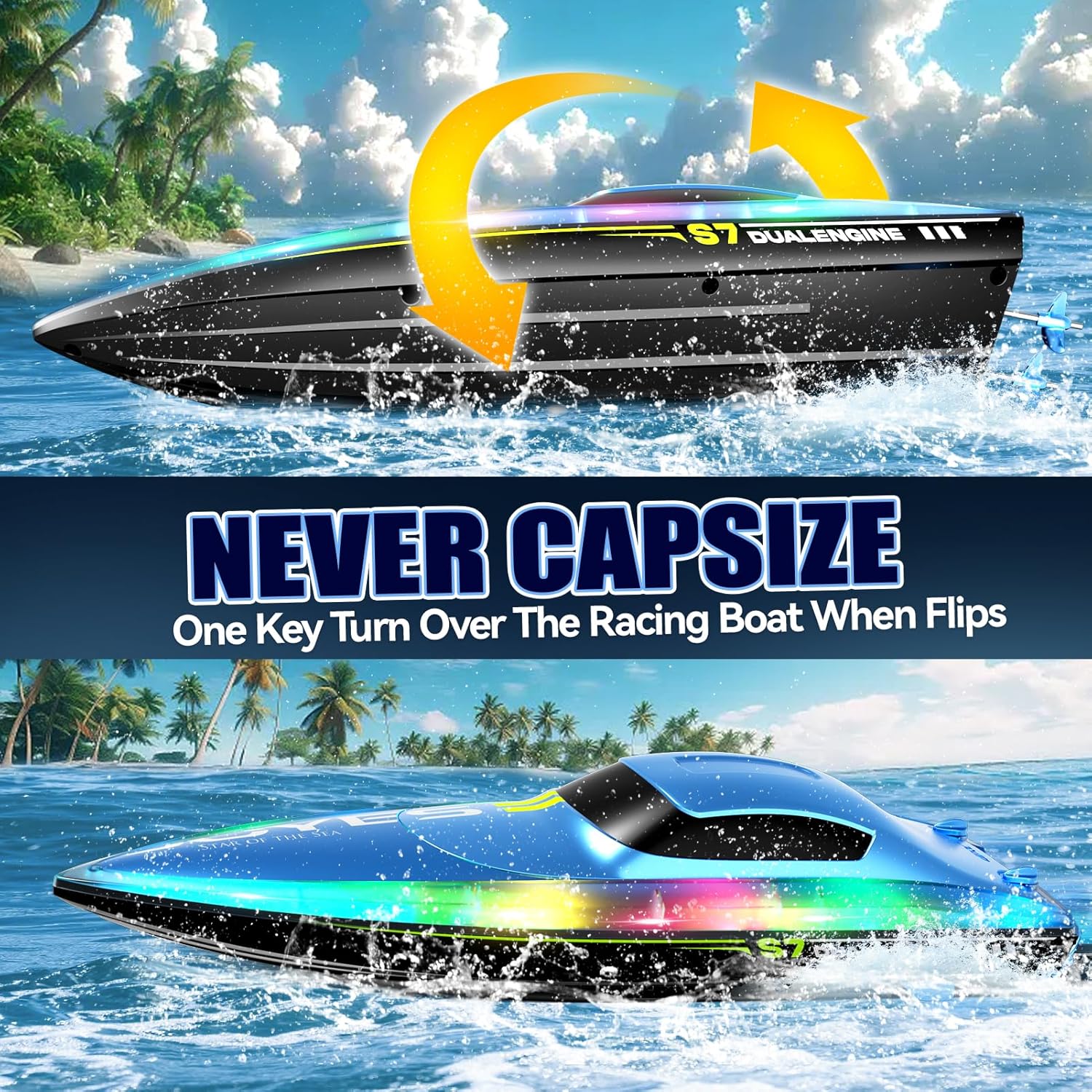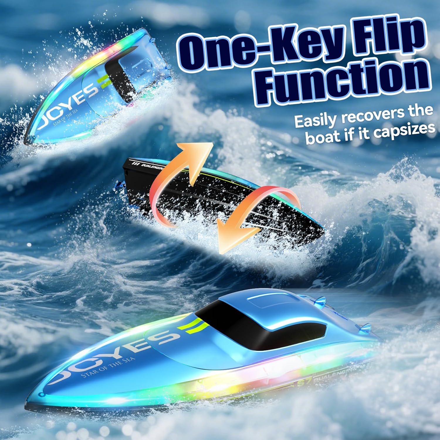 【Barca RC ad alta velocità】 La barca RC ad alta velocità è alimentata da due motori e raggiunge una velocità impressionante di oltre 15 km/h, grazie al design aerodinamico bionico e allo scafo aerodinamico. La forma innovativa riduce la resistenza dell'acqua, garantendo una navigazione più stabile e veloce rispetto ad altre barche RC. Il telecomando a 2,4 GHz controlla facilmente la barca per andare avanti, girare a destra o a sinistra, con una portata di 100 metri, mentre la sua tecnologia anti-interferenza supporta il gioco di più barche insieme, rendendola ideale per incontri sociali o sport acquatici competitivi. 【Motore potente e avviso di batteria scarica】 Adottando un design a doppio motore, sotto il potente motore, è ancora possibile mantenere una forte potenza e una guida stabile. Queste barche RC includono due batterie ricaricabili che forniscono oltre 50 minuti di tempo di gioco totale, consentendo di godere di sessioni in acqua più lunghe. Quando le batterie sono scariche, il controller emetterà un allarme per ricordare di sostituirle. 【Giocattolo regalo per tutte le età】 Si tratta di un fantastico giocattolo che combina sicurezza, velocità e divertimento senza fine, adatto a bambini di età superiore agli 8 anni o adulti, ecc. Questa barca è il regalo perfetto. La barca può essere utilizzata in una varietà di luoghi come piscine, fiumi, laghi e altre acque, offrendo un divertimento illimitato. 【Barche da corsa con luci LED】 La barca RC 4DRC S7 è dotata di luci fantastiche lungo i bordi dello scafo, che la distinguono dalla massa delle altre barche RC e ti consentono di praticare emozionanti sport acquatici anche dopo il tramonto, rendendo facile giocare anche di notte, oltre a seguire senza sforzo la tua rotta e aggiungere un tocco di colore alle tue avventure notturne. Inoltre, la nostra barca telecomandata ha una funzione demo one-touch, così potrete divertirvi con emozionanti acrobazie acquatiche! 【Funzione di bilanciamento automatico e impermeabilità】 La funzione di raddrizzamento automatico impedisce di perdere accidentalmente la barca. L'imbarcazione RC è dotata di una tecnologia avanzata sensibile all'acqua che arresta automaticamente il motore quando l'imbarcazione esce dall'acqua e, se l'imbarcazione si capovolge, il sistema di recupero integrato la riporta immediatamente in posizione verticale, garantendo una navigazione ininterrotta senza timore di perdere il controllo. Inoltre, è dotata di un design completamente sigillato e impermeabile con una copertura impermeabile che assicura che il portello rimanga asciutto per tutto il tempo.