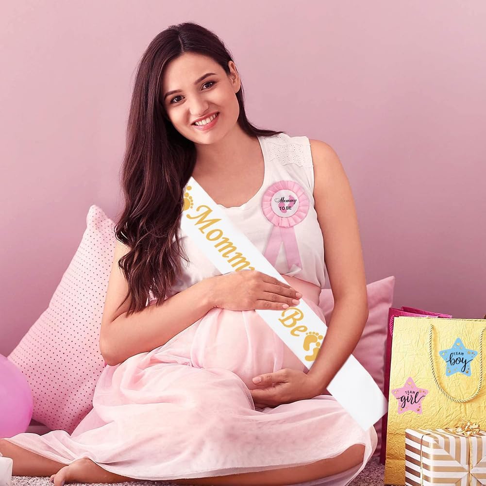 4pcs Baby Shower Sash e Badge, 100pcs Adesivi Rivelazione di Genere, Mamma To Be Sash, Daddy to be Distintivo, Tipo di regalo per neopapà e mamma, per Decorazioni Baby Shower