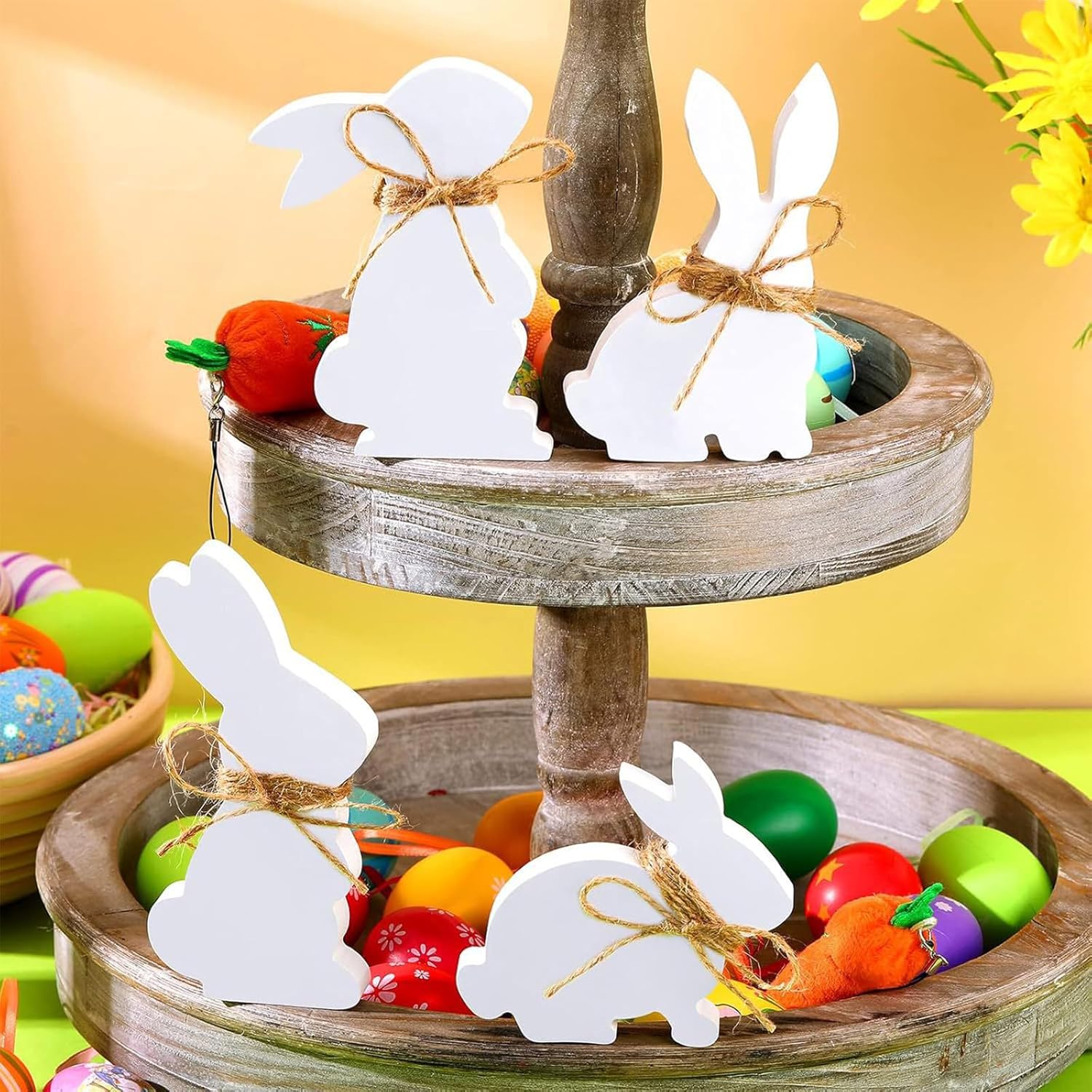 Realizzato in legno, leggero e non sbiadisce e non si rompe facilmente, questa decorazione da scrivania in legno con coniglietti è una buona durata, garantendo che rimanga fondamentale nella decorazione delle vacanze Ideale per decorare vassoi a più livelli per festival primaverili, librerie, tavoli da pranzo o davanzali, aggiunge un tocco di calore ed elegante cahrm a salotti, aule o negozi Molto adatto per la famiglia, soprattutto quelli con bambini, nonché educatori e rivenditori che cercano di creare un ambiente invitante e felice Migliora la tua celebrazione del festival di primavera con le nostre 4 statuette a forma di coniglio in legno, decorazione in legno splendidamente realizzata che porta fascino festival a qualsiasi spazio Questo cartello in legno è anche un regalo premuroso per la speranza, diffondendo allegria e ambiente festivo unico tra amici, familiari e vicini