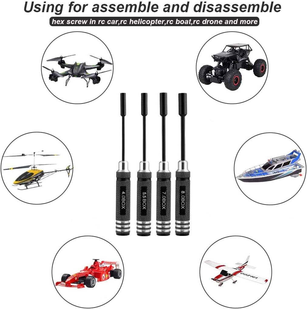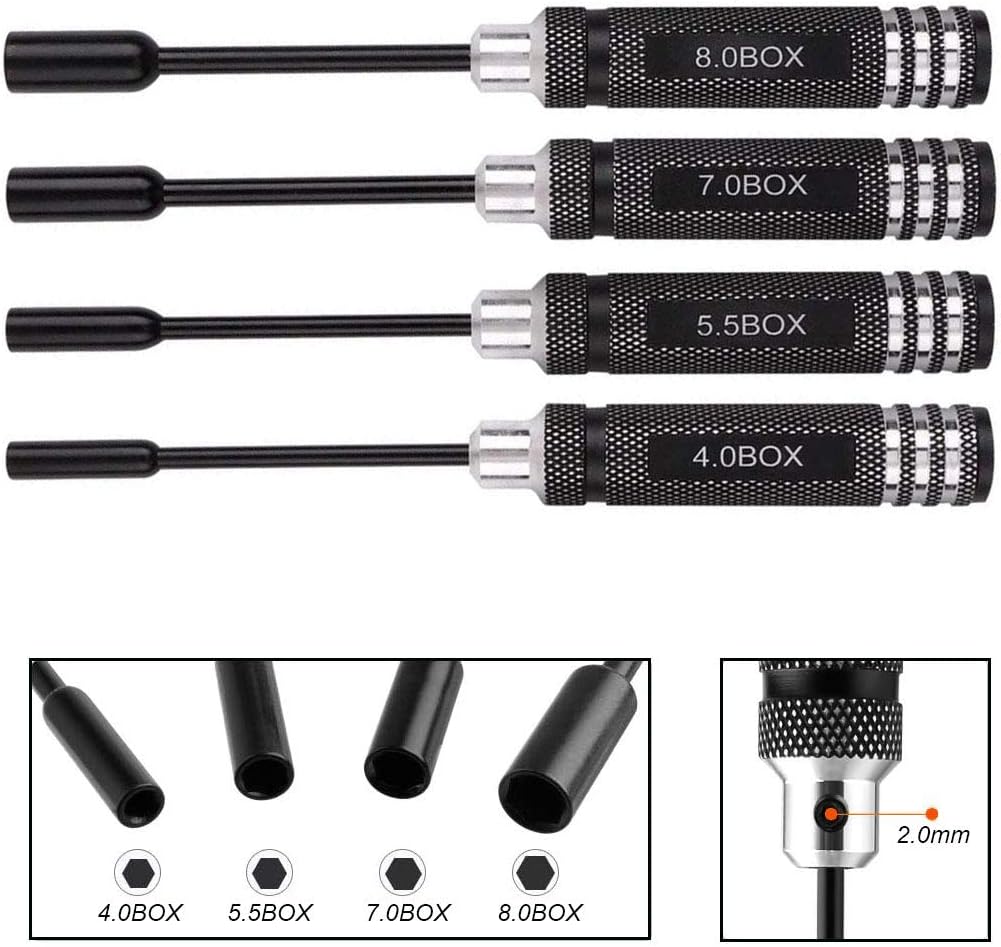 Tempo di servizio: la chiave a bussola esagonale giradadi manici sono realizzati in lega di alluminio di alta qualità, ben lavorati di precisione CNC si provice tempo di servizio. 4 diverse dimensioni: questo set contiene 4 socket Nut Driver in diverse dimensioni totale di 4.0, 5.5, 7.0, 8.0 mm che soddisfano le vostre necessità. Superficie liscia e durevole: acciaio ad alta velocità driver dado prese hanno finitura spazzolata e punte sono più resistente. Leggero e confortevole: manico è leggero e garantisce un comodo utilizzo. Esagonale Dado può essere ampiamente usato per riparare o assemblare telecomando auto, aerei, ecc. Garanzia: se non sei soddisfatto con il nostro prodotto ricevuto, si può applicare per rimborso incondizionata in 180 giorni. In termini di qualsiasi problema di questo prodotto, potrete inviare e-mail a noi in qualsiasi momento