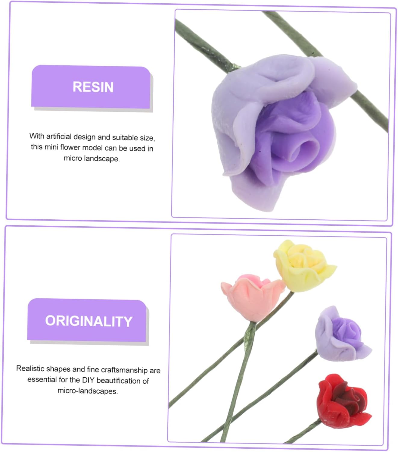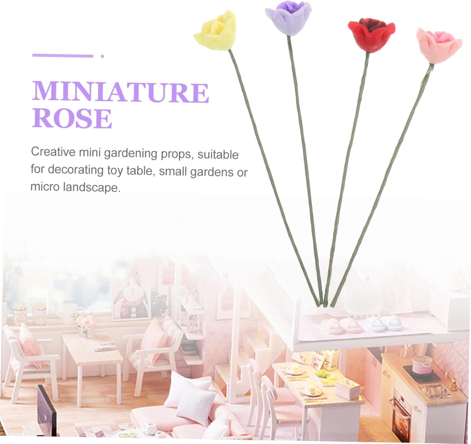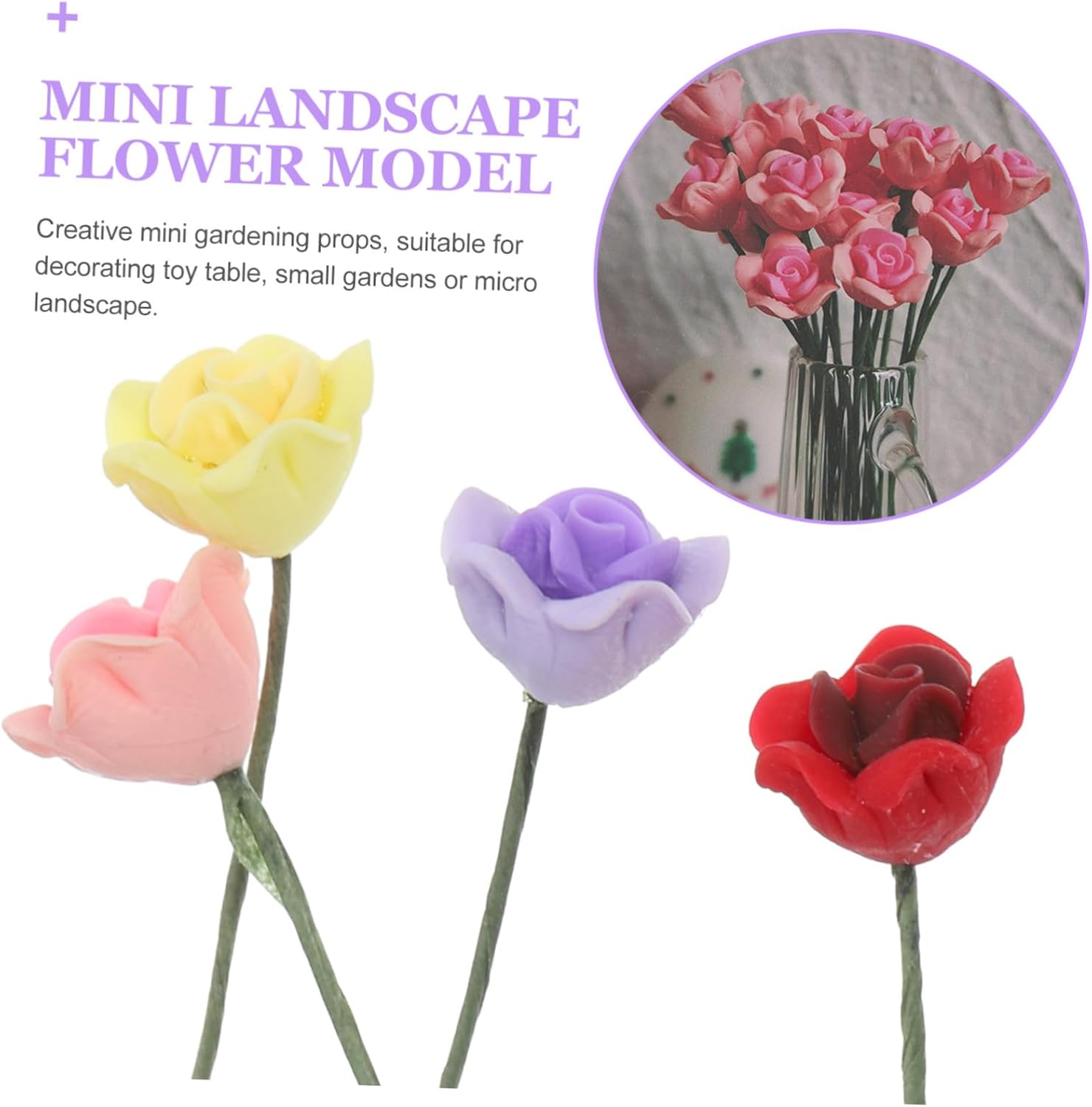 Artificiale - con pregevole fattura e dimensioni ragionevoli, questi modelli sono leggeri, facili da trasportare e riporre, ornamenti del modello Fiori della casa delle bambole: ha le dimensioni adeguate, senza occupare troppo spazio e facile da trasportare dove serve, modello di simulazione Mini rose finte: mini è realizzata in resina robusta, filo di ferro, il modello è e non sbiadisce facilmente, mini decorazione da giardino Mini fiori: per decorare mini paesaggi, utilizzare la disposizione dei mini tavoli e rendere il tuo paesaggio vivido, mini ornamento Bouquet in miniatura: la miniatura può essere ampiamente utilizzata in modelli architettonici decorativi, layout di scene o decorazioni paesaggistiche, accessori da tavola