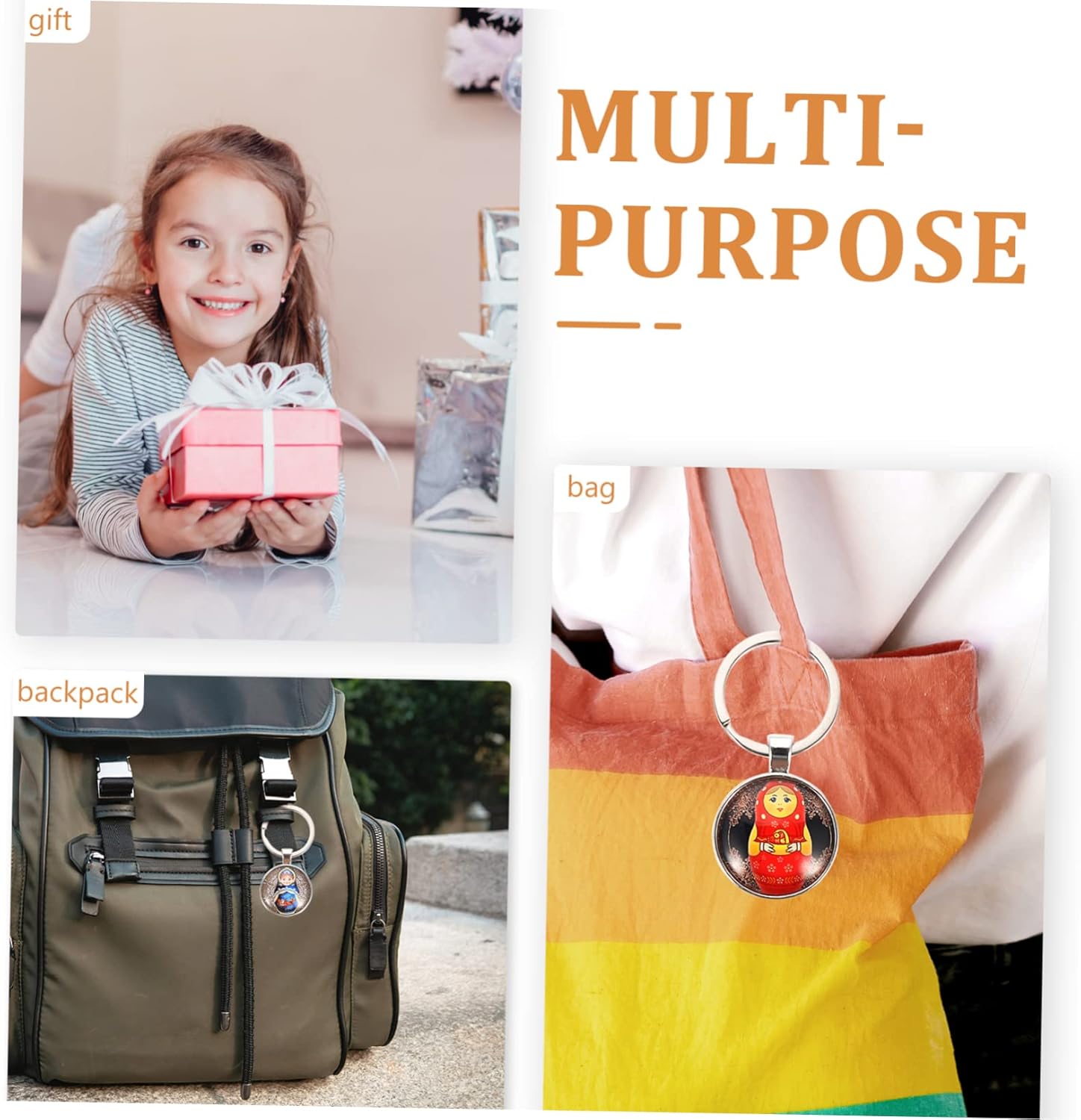pacchetti 4 portachiavi caratteristiche -dimensioni:5,50x2,50x0,20 cm/2,16x0,98x0,08 pollici graziosi portachiavi per zaini - : portachiavi con colori assortiti -materiale: lega, casa portachiavi : questo attraente portachiavi per bambole è fantastico per portare loro ciondoli portachiavi più divertenti e sorprendenti. -L'interessante design della bambola matrioska russa rende questo gingillo un ottimo accessorio per chiavi o borse portachiavi kawaii. -il della bambola russa è affascinante e rende questo portachiavi unico e squisito. il design creativo ti fa sentire interessante portachiavi unici. -Il portachiavi della bambola russa è piccolo e facile da trasportare, adatto a tutti i tipi di persone. Simpatico portachiavi per zaino. -Il nostro portachiavi con bambola matrioska russa è realizzato con un materiale che durerà a lungo. Portachiavi con bambola matrioska. informazioni sulla merce portachiavi borsa vi presento questo adorabile ciondolo portachiavi.portachiavi bambola russa potete comprare questo portachiavi bambola russa come bomboniera per le feste.portachiavi matrioska tutti gli ospiti adoreranno questo portachiavi.portachiavi bambola nidificante il i dipinti sul piccolo burattino russo sono e sembrano tutti belli e ben fatti