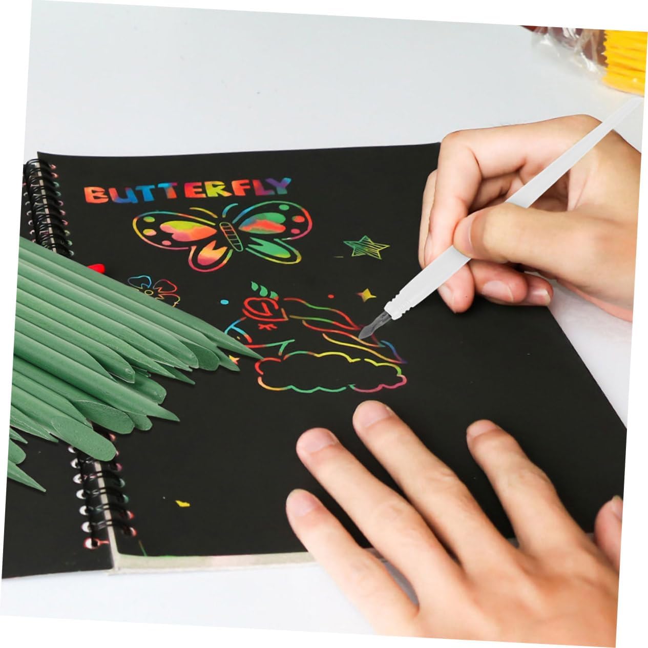 Facile da usare: non sono richieste competenze di disegno precedenti; puoi creare senza sforzo una splendida arte su carta da grattare con questo semplice strumento, penna per la rimozione dei graffi, arte su tavola da grattare Design innovativo: la punta in metallo consente linee precise e pulite, migliorando la qualità delle tue creazioni artistiche su carta da grattare, strumento di disegno da graffiare, kit di pittura da graffiare Adatto a tutti gli artisti: che tu sia un principiante o un professionista, questa penna da grattare è una preziosa aggiunta alle tue forniture artistiche, set da disegno artistico, carta da grattare per Potenziale creativo: questo strumento per scratch ti aiuta a creare pezzi d'arte unici ed espressivi su carta da scratch, aggiungendo un tocco alla tua opera d'arte, penne per immagini scratch, set di arte su carta da scratch Design intuitivo: facile da usare e maneggiare, questa penna da è adatta ad artisti di tutti i livelli, principianti agli esperti, strumenti per la pittura da , strumento artistico per la pittura da