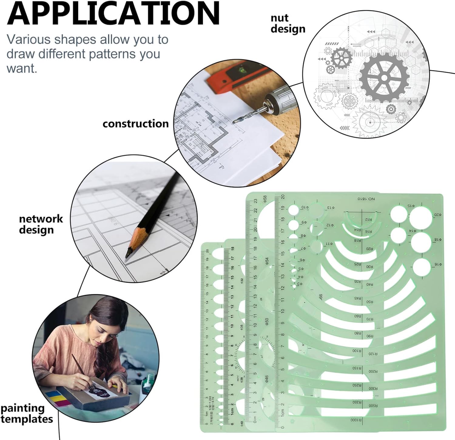 Righelli per pittura geometrica: leggeri e portatili, più comodi da riporre e trasportare, modello cavo fai da te Strumenti geometrici: questi modelli di disegno sono adatti a persone di tutte le età per soddisfare diverse esigenze di utilizzo, modelli di misurazione cavi Stencil per pittura in plastica: adatti per la progettazione artistica, la misurazione del punteggio, i modelli di costruzione, l'architettura, la tecnologia di rete, il disegno, i righelli geometrici Righelli per disegno geometrico: riceverai diversi modelli di disegno in diversi design, che possono soddisfare le tue diverse esigenze per l'uso quotidiano, strumenti di disegno Stencil da disegno: fantastici e pratici aiutanti per il disegno da usare in interni ed esterni, righelli da disegno in plastica