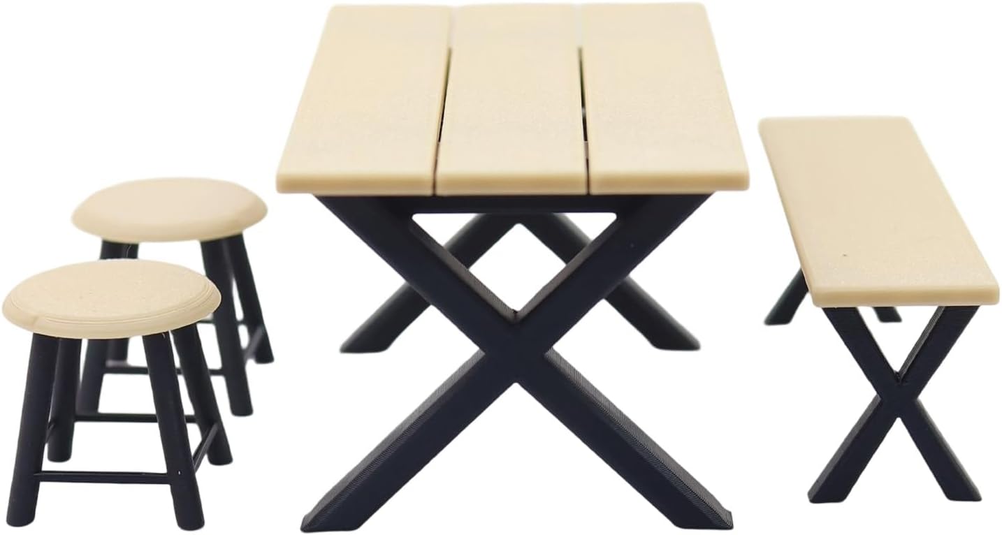 Combina lunghe panchine, sgabelli circolari e tavolo per creare layout infiniti di picnic in miniatura o espositori per scaffali con ciondoli Migliora le decorazioni della scena del campeggio nel cortile, le case delle bambole e l'occasione fantasiosa per bambini dai 6 anni in su Design per hobbisti di case delle bambole, creatori di scene all'aperto e famiglia alla ricerca di accessori interattivi per giochi di finzione Meticolosamente mobili da patio in miniatura replica texture ingranaggi esterni, uso amichevole, materiali sicuri per i bambini Set di mobili da campeggio in scala 1/12 con sedia pieghevole e tavolo, ideale per accessori per case delle bambole e appassionati di decorazioni all'aperto in miniatura