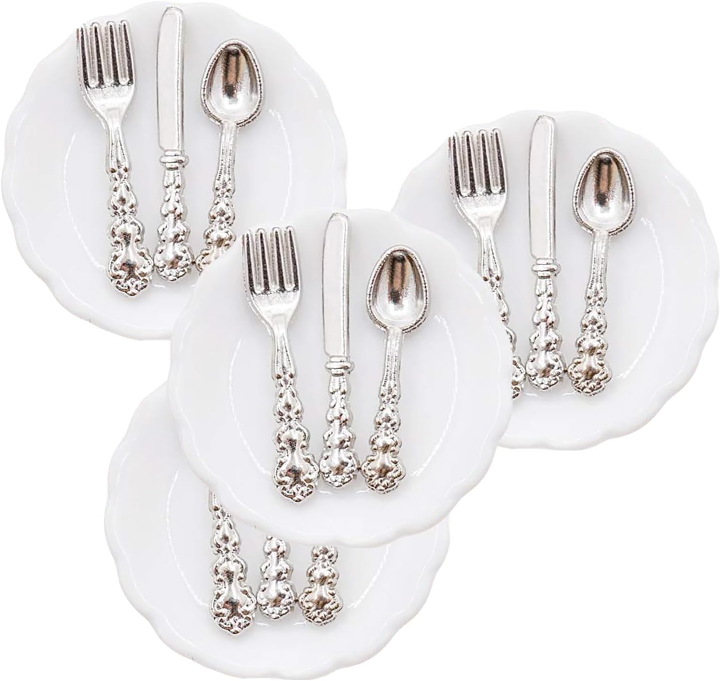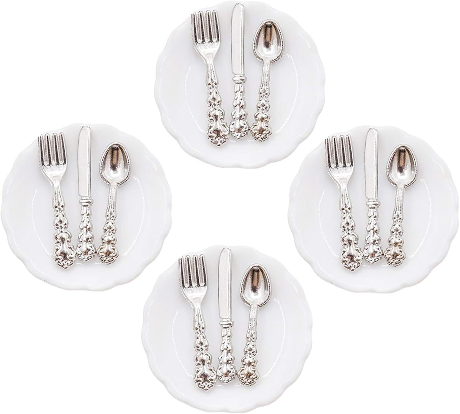 per creare varie scene, queste miniature sono abbastanza multiuso per l'uso in cucine, bagni, salotti, giardini e molto altro ancora, migliorando occasioni di gioco di ruolo e giochi fantasiosi Ideale per gli appassionati di miniature e collezionisti, questo prodotto è ideale per coloro che apprezzano accessori dettagliati e autentici per case delle bambole Migliora le tue case delle bambole realistiche con il set di piatti e posate in miniatura, caratterizzato da una squisita fattura che porta eleganza classica a qualsiasi ambiente in miniatura Scopri il mondo in miniatura con il set di stoviglie, design per ispirare la creatività e fornire infinite possibilità di personalizzazione e design all'interno dei tuoi progetti Dollhouses Utilizza metallo e ceramica selezionati, questo set include quattro piatti e posate in miniatura, offrendo durata e dettagli intricati per decorazioni realistiche per case delle bambole