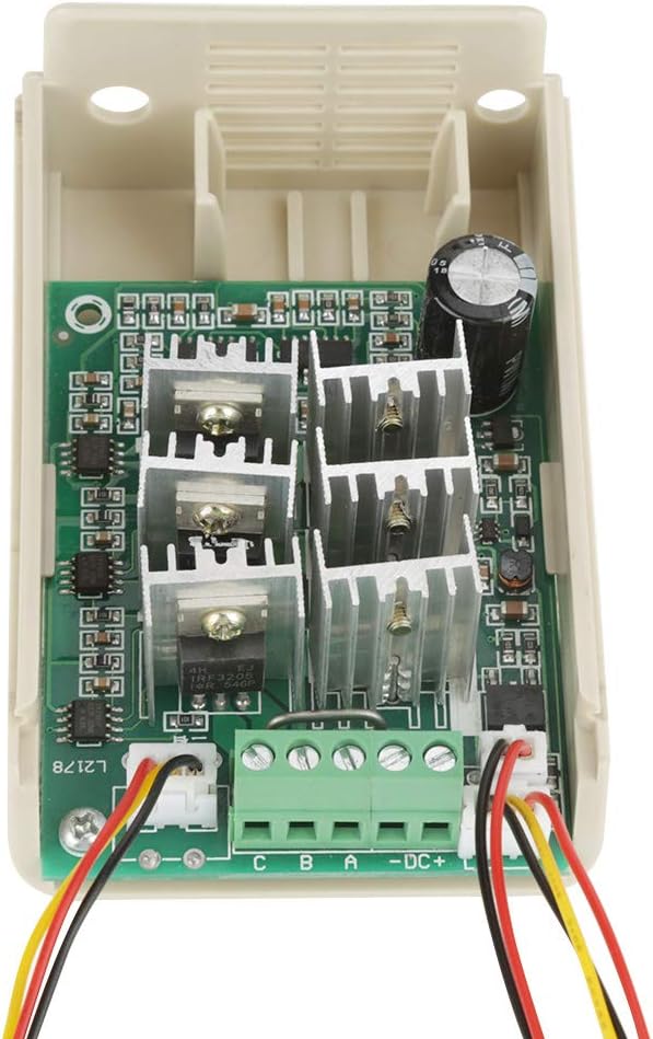 UTILIZZO DI CHIP DI ALTA QUALITÀ: questo motore CC senza spazzole trifase senza sensori utilizza chip di alta qualità per un'ampia tensione. FUNZIONAMENTO SICURO: questo motore CC senza spazzole trifase senza sensori utilizza chip di alta qualità per un'ampia tensione. Regola il motore in modo fluido, senza rumore e vibrazioni, doppia protezione del motore e del regolatore di velocità del motore Regolatore di velocità del motore CC, controller del motore BLDC senza spazzole trifase, regolatore variabile per il controllo della velocità del motore CC ad alta tensione, 5-36 V, CONTROLLER DELLA VELOCITÀ DEL MOTORE 15 A: e . Design di ottimizzazione del circuito, prestazioni stabili, adatto a lunghe ore di lavoro. La corrente di uscita massima è 15 A, l'ordine dei cavi motore ABC non è diverso: la tensione di ingresso è DC 5-36 V, ha un design del circuito preciso, alta efficienza e un