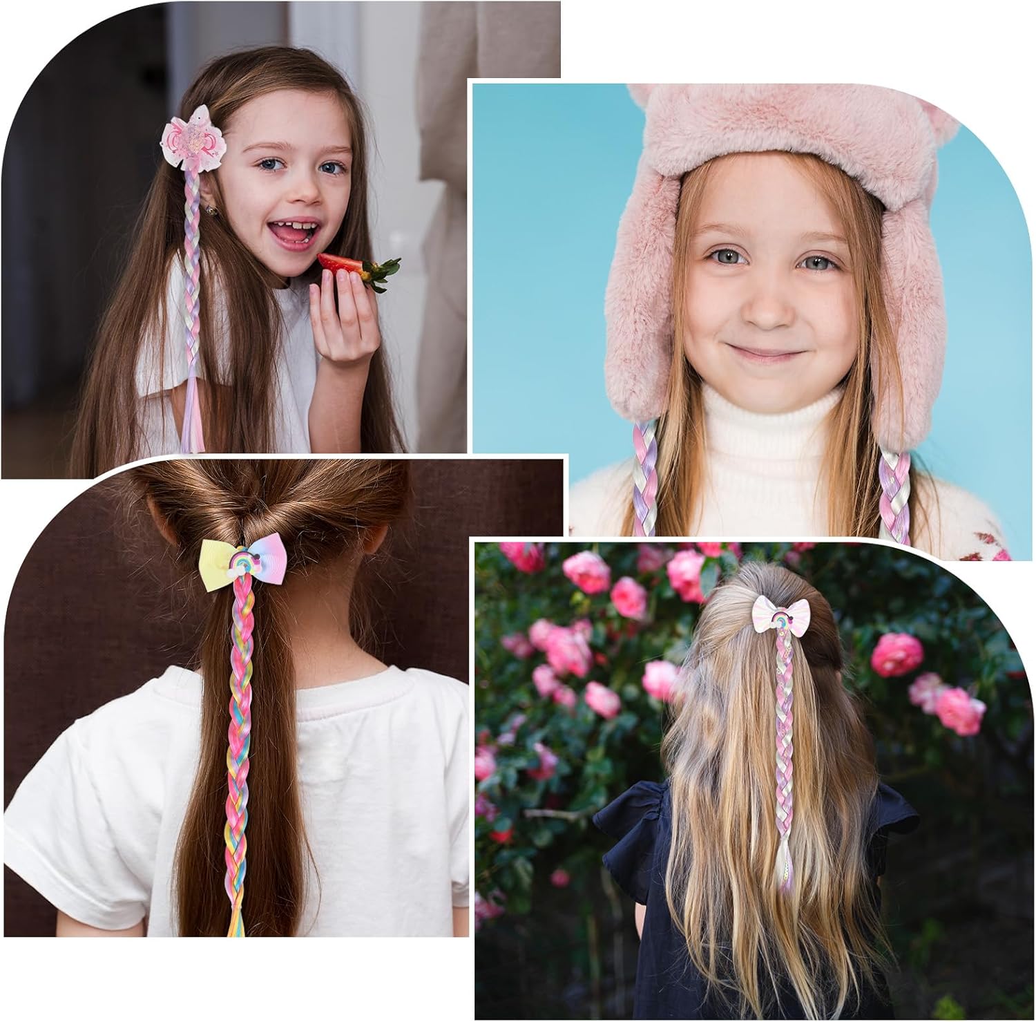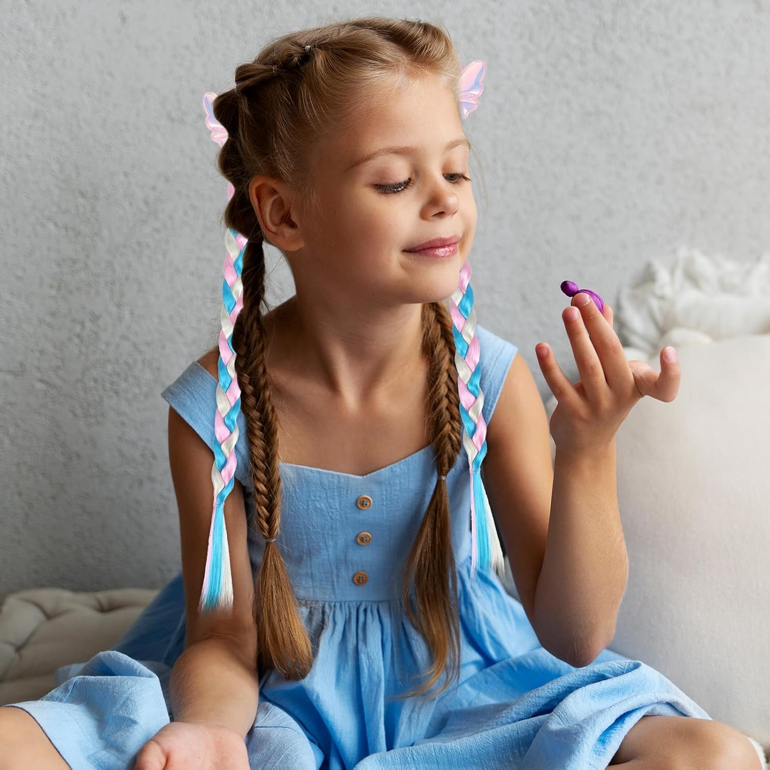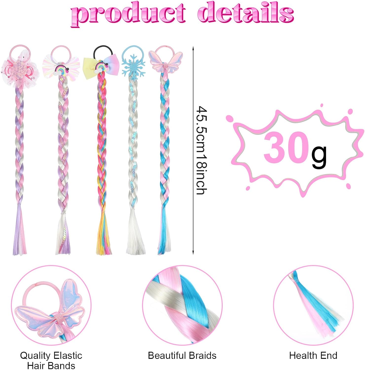 Varietà di styling colorata per piccole principesse: queste ciocche di capelli colorate con design arcobaleno trasformano ogni ragazza in una brillante principessa. Le 5 diverse trecce per parrucca con motivi giocosi (fiocchi di neve, conchiglie, fiocchi glitterati) offrono infinite possibilità di combinazione. Il cerchietto integrato a treccia con gomma morbida consente un rapido cambio di acconciatura senza danneggiare i capelli. Materiale di alta qualità per un gioco sicuro: le ciocche colorate sono realizzate in plastica delicata sulla pelle, leggere, ipoallergeniche e prive di spigoli vivi. Le trecce della parrucca con elastici si adattano perfettamente senza pizzicare. Particolarmente pratico: il cerchietto per capelli può essere rimosso senza lasciare residui, ideale per le teste sensibili dei bambini. Facile da usare per acconciature creative: si tratti di una principessa intrecciata o una voluminosa parrucca a trecce e coda di cavallo, le ciocche lunghe 40 cm non richiedono alcuna conoscenza. Grazie all'elastico, le ciocche di capelli colorate resistono anche in caso di corsa selvaggia. Il cerchietto a treccia in dotazione funge anche da elegante fascia per capelli. Trasformazione magica per occasioni speciali: queste trecce per parrucca sono un must have per feste in costume: fate unicorno, imitazione Elsa o look da sirena, le ciocche colorate di capelli completano qualsiasi abbigliamento da gioco di ruolo. L'effetto principessa treccia glitter rende anche feste scolastiche o mercatini di Natale eventi speciali. Regalo ideale con valore educativo: le ciocche colorate di capelli stimolano il gioco creativo e lo styling della fiducia. Come cerchietto per capelli, set di trecce con 5 motivi (farfalla, fiocco di neve, ecc.) allena le abilità motorie. Le varianti di treccia principessa sono giocattoli educativi con effetto di apprendimento per colori e forme.