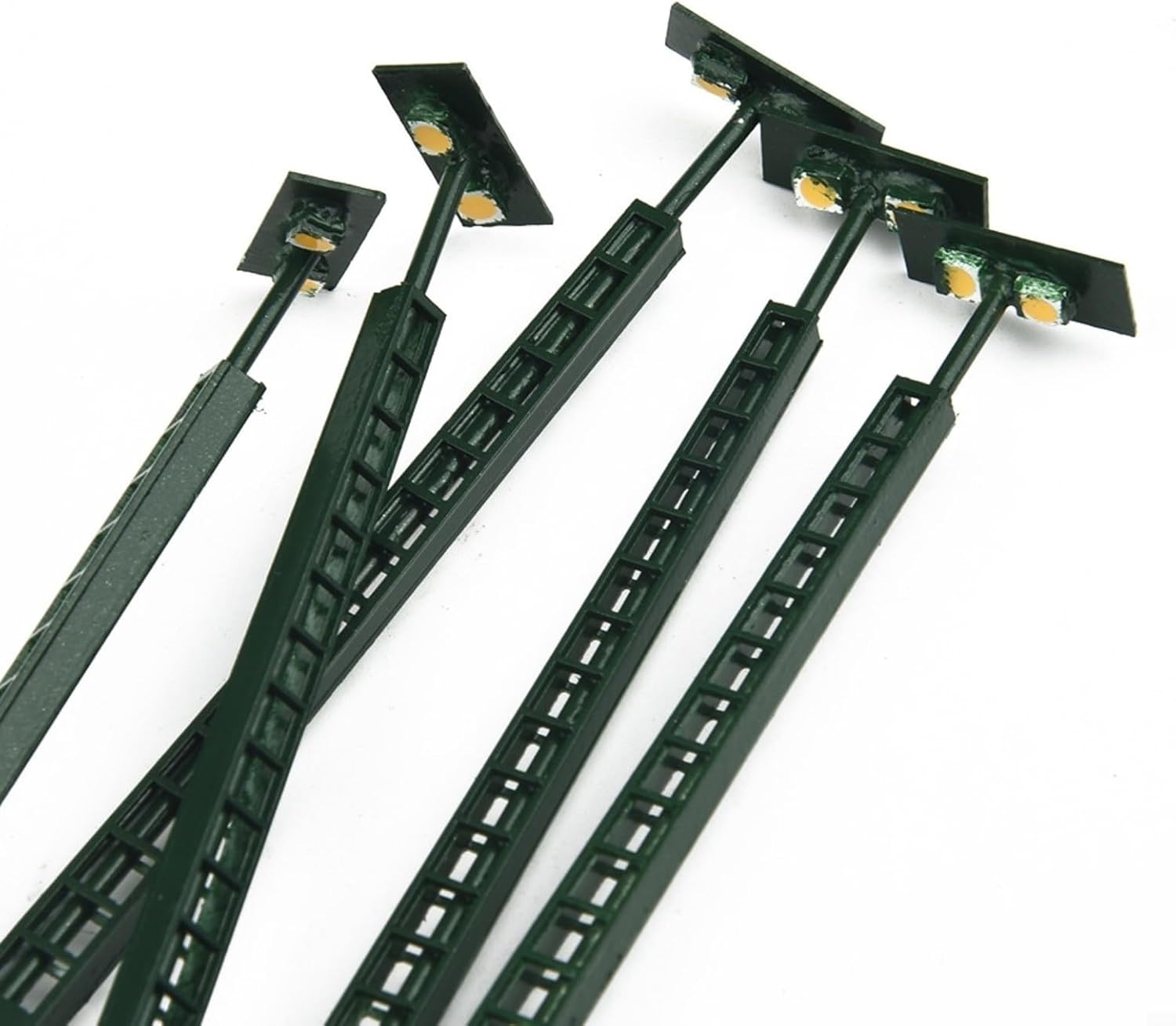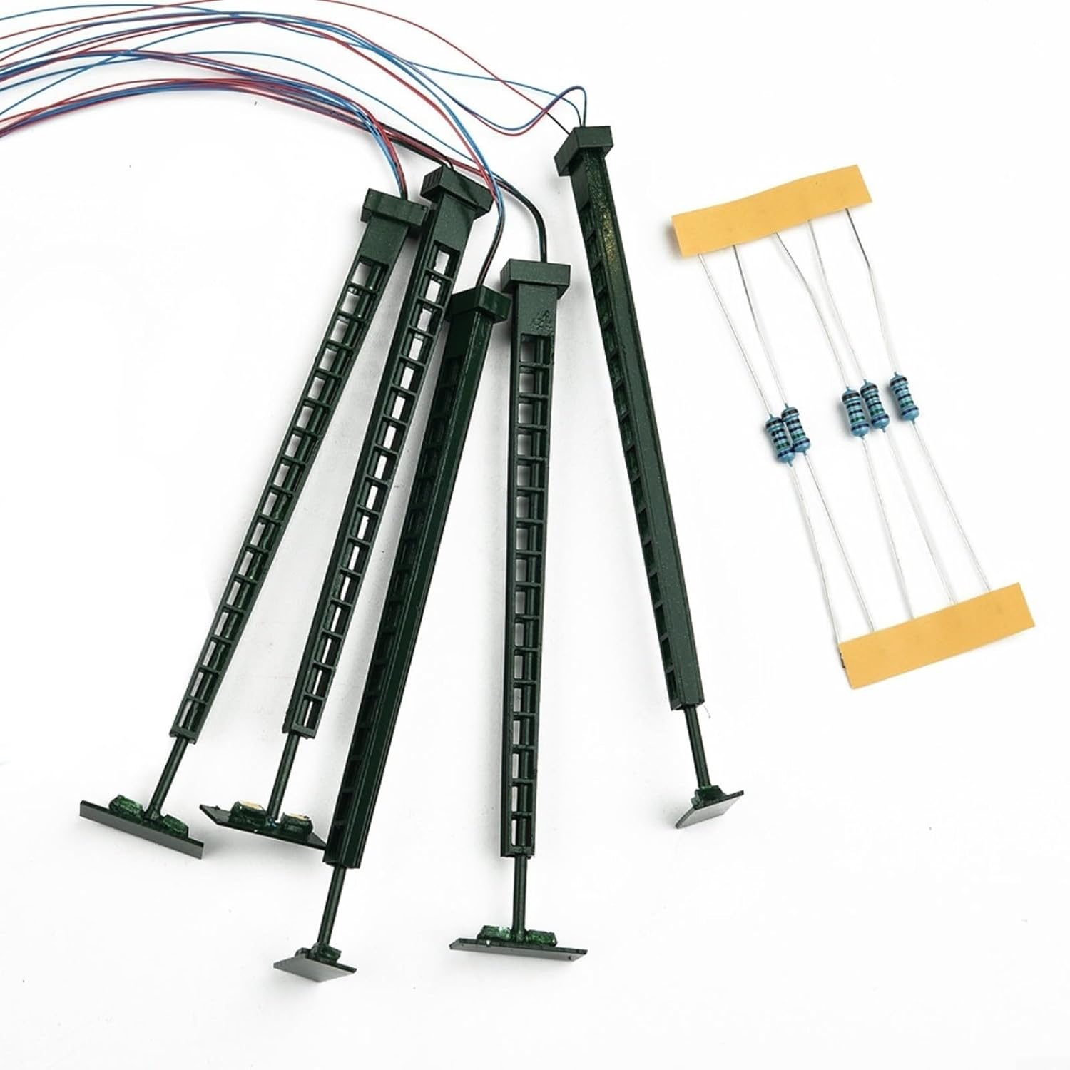 【Luci modellistiche ferroviarie】 Queste luci a traliccio sono appositamente progettate per modellismo ferroviario. Sono realizzati con LED e sono perfetti per effetti di luce realistici. 【Adatto per layout a scartamento N】 Queste luci sono progettate per layout a scartamento N, con una scala di 1: sono adatte per tensioni di alimentazione di 3 V ed è importante utilizzare la corrente operativa corretta di 20 mA per ciascun LED. 【Utilizzo sicuro】 Per evitare danni al LED, non utilizzare queste luci direttamente su 12V o 16V. Tuttavia, sono incluse resistenze in serie per il collegamento a 12-16 V in modo da poterle utilizzare con l'apposito trasformatore. 【Materiale di alta qualità】 Le luci a palo reticolare sono realizzate in metallo, che garantisce durata e stabilità. Hanno una lunga durata e offrono una sorgente luminosa affidabile con tecnologia LED. 【Fornitura】5 pezzi di lampade, 5 pezzi di resistori in serie per il collegamento a 12-16V.