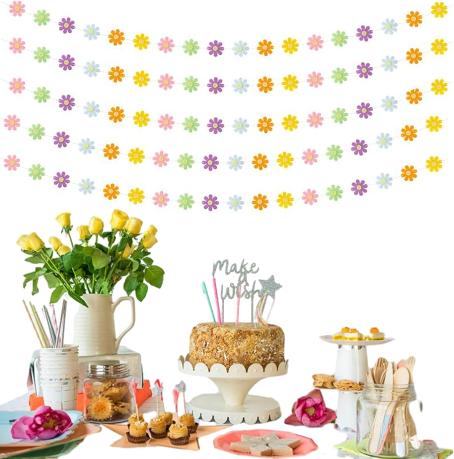 【Incluso】 Riceverai 5 pezzi di striscioni per feste a margherite, kit ghirlanda di margherite per appendere forniture per feste hippie, ricchi di colori, quantità sufficiente per la decorazione della tua festa. 【Materiale di alta qualità】 Questo banner è realizzato in tessuto non tessuto di alta qualità, inodore, resistente al colore, leggero, resistente, facile da riporre e riutilizzare, creando un'atmosfera piacevole per la tua festa. Un mazzo di 18 margherite. 【Divertimento fai-da-te】 Questa bandiera viene fornita con una corda. Devi assemblarlo da solo. Facilità d'uso. Puoi attaccarlo alla lunghezza desiderata per ottenere una decorazione unica. 【Design unico】 Questo striscione da festa a margherita sospeso presenta tre forme classiche di margherite con colori vivaci e motivi vivaci e belli. Appendi semplicemente ovunque tu voglia decorare. 【Ampiamente usato】 Questa ghirlanda di margherite può essere appesa a porte, finestre, ringhiere delle scale, alberi e giardini e può essere utilizzata anche per feste con margherite, baby shower, matrimoni, feste di Pasqua, decorazioni primaverili, feste di compleanno, ecc.