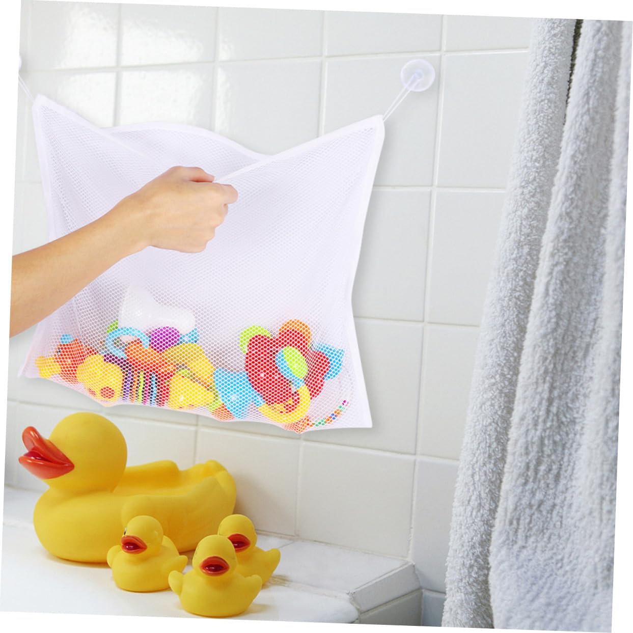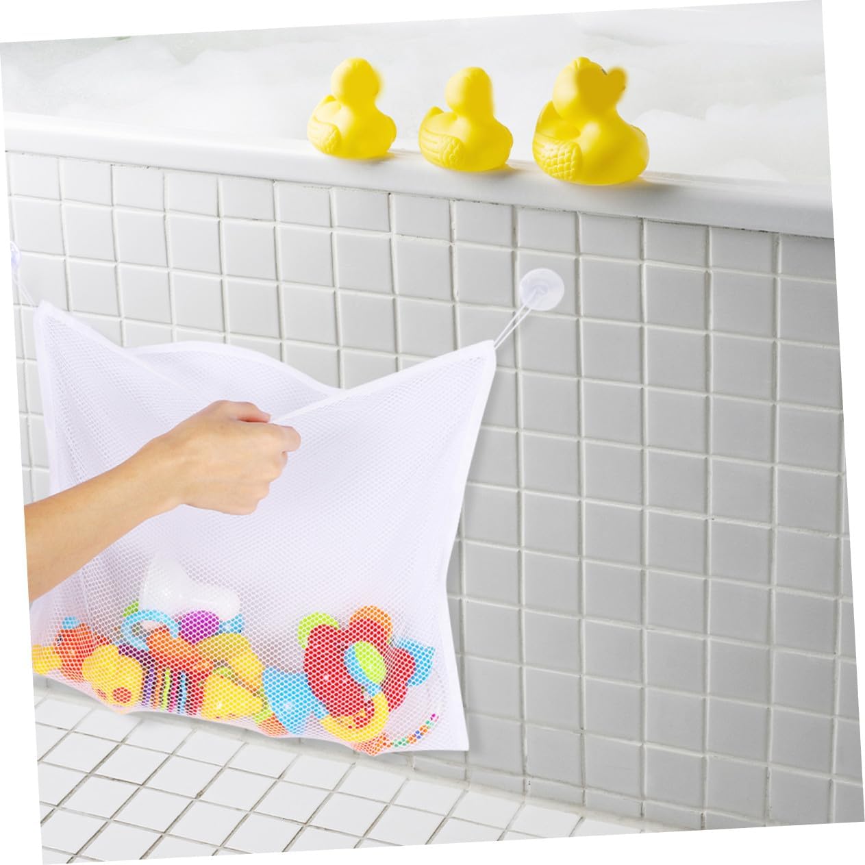Capacità: in contenere un'ampia giocattoli, rendendo momento del bagno più piacevole e organizzato, contenitore per giocattoli da bagno sospeso, contenitore per giocattoli da vasca Fissaggio sicuro con ventosa: include potenti ventose assicurano un fissaggio stabile e sicuro alle pareti o alle vasche del bagno, sacchetti portaoggetti in rete per giocattoli, portaoggetti per vasca da bagno Installazione : si installa senza e senza bisogno attrezzi, offrendo praticità e facilità d'uso, borse per riporre i giocattoli, piccole borse in rete per riporre i giocattoli Struttura in rete traspirante: utilizza un tessuto a rete favorisce flusso d'aria, consentendo ai giocattoli asciugarsi e rimanere igienici, rete per giocattoli da bagno per vasca, rete da bagno per giocattoli Tessuto a rete traspirante: realizzato con rete traspirante favorisce flusso d'aria, aiutando i giocattoli ad asciugarsi rapidamente e a rimanere, giocattoli da bagno, borsa a rete per riporre i giocattoli
