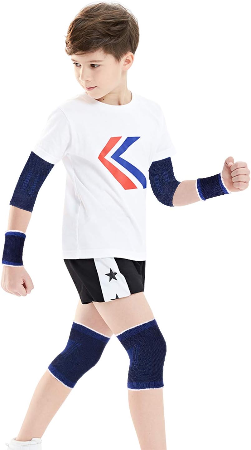 Dimensioni: adatto per bambini dai 6 ai 13 anni. La confezione include: 1 paio di protezioni per palmo, 1 paio di ginocchiere, 1 paio di cavigliere, 1 paio di gomitiere, 1 paio di protezioni per il polso. Materiale di alta qualità: il set di protezioni per ginocchia, gomiti e palmi è realizzato in cotone poliestere resistente e traspirante, con una buona riduzione del calore, assorbe il sudore e resistenza allo scivolamento. Supporto di alta qualità con design antiscivolo per il massimo comfort e sostegno. Funzione: protegge le articolazioni del polso, i palmi, le ginocchia, le caviglie e i gomiti con un buon effetto di supporto e una pressione uniforme, indossabile, adatto per vari sport, tra cui fitness, corsa, alpinismo, basket. Il set di ginocchiere protettive per lo sport perfetto previene sforzi e distorsioni. Protezione perfetta per i bambini: set di protezioni sportive per bambini, per polsi, gomiti, ginocchia, palmo. Ridurre la resistenza causata da danni eccessivi a ginocchia, gomiti e palmi. Ampia gamma di utilizzi: questo set professionale di protezioni di sicurezza è adatto per pattinaggio, equitazione, ciclismo, mountain bike, bici da strada, BMX, MTB, skateboard, scooter e altri sport estremi.