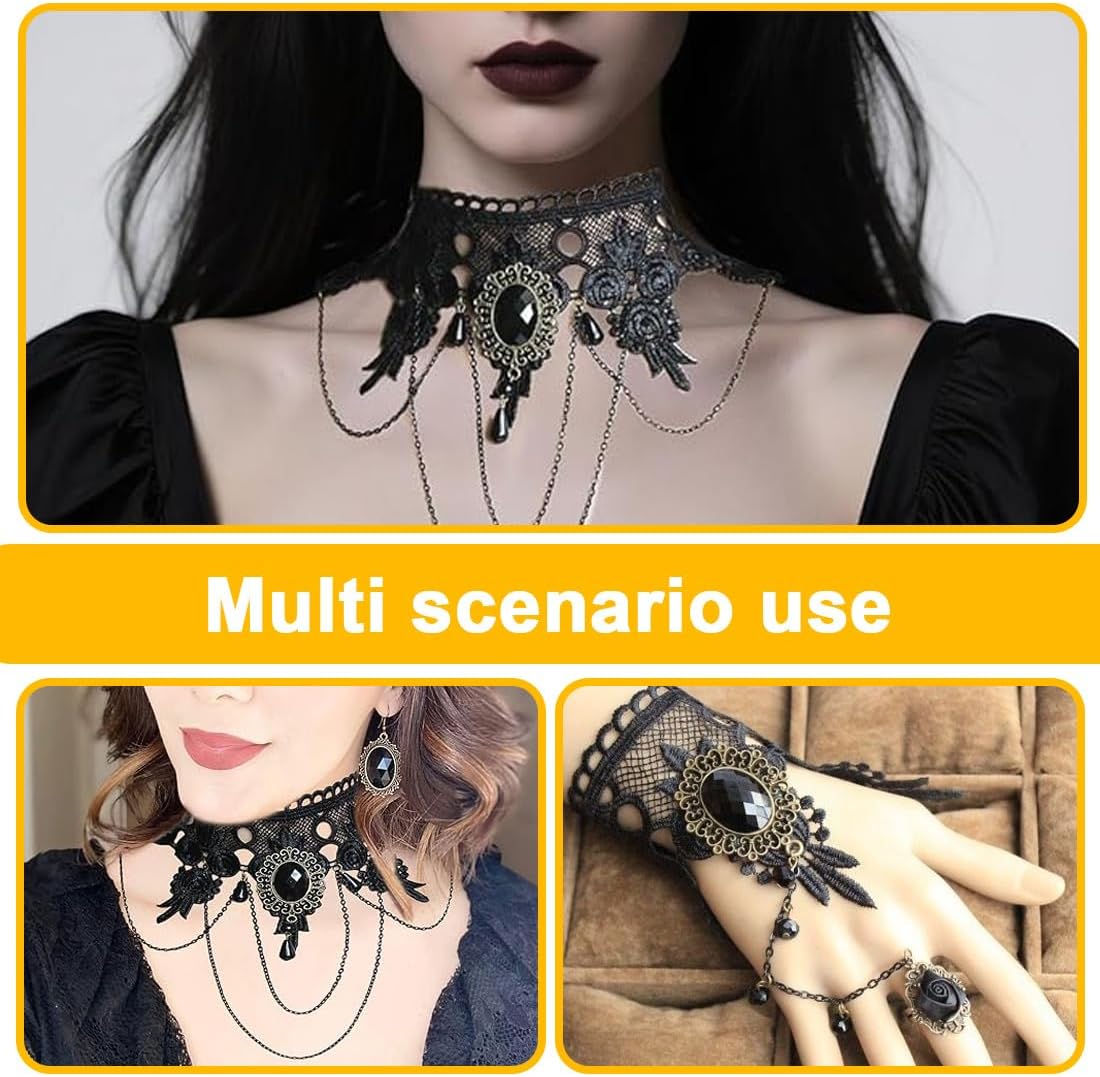 Materiali di alta qualità: La collana di Halloween è realizzata con pizzo raffinato, pietre artificiali, strass e una lega robusta, garantendo un aspetto elegante e una lunga durata Design sicuro: Dotata di una pratica chiusura a moschettone, la collana è facile da indossare e offre una tenuta sicura per un utilizzo senza preoccupazioni Comfort ottimale: La collana è delicata sulla pelle e garantisce una sensazione piacevole durante l'uso, senza causare reazioni allergiche – ideale per pelli sensibili Stile gotico elegante: Perfetta per donne e ragazze che desiderano un look Lolita-Gothic sofisticato – un accessorio distintivo per Halloween e occasioni speciali Regalo versatile: Una scelta ideale per Halloween, festività, Natale, San Valentino e altre occasioni speciali – un accessorio unico che conquista