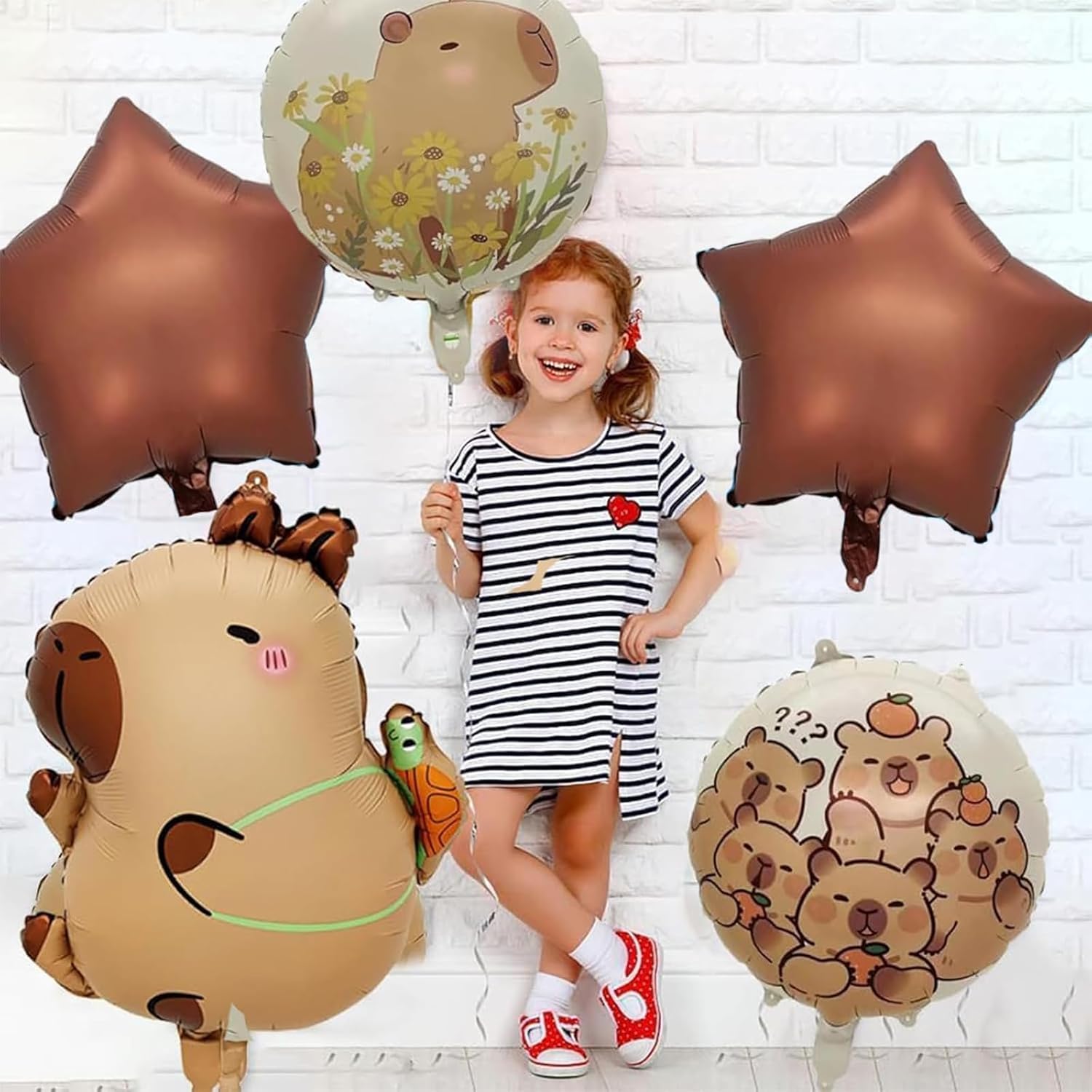【Dimensioni Del Set】Riceverete 5 pezzi di palloncini di capibara, Design carino e bello, creano un'atmosfera meravigliosa per la tua festa e possono anche essere usati come giocattoli quotidiani per bambini 【Materiale】Il Palloncini è realizzato in materiale di alluminio di alta qualità, robusto e rispettoso dell'ambiente, leggero e resistente, non facile da sbiadire. I palloncini capibara creano una festa amichevole, ecologica e memorabile per voi e i vostri bambini 【Decorazioni per feste】I palloncini possono aiutarti a creare la scena della festa perfetta, simpatici palloncini capibara creeranno una bellissima festa d'atmosfera per il tuo bambino, si divertiranno e creeranno ricordi allo stesso tempo 【Facile Da Usare】Basta usare una cannuccia o una pompa per palloncini per gonfiarli. Il palloncino per feste Capybara è una decorazione di compleanno bella e impressionante progettata per la festa di compleanno del tuo bambino 【Ampia gamma di utilizzo】I palloncini a tema capibara possono essere utilizzati per feste di compleanno per bambini, feste a tema animale, feste con palloncini, feste di Capodanno, feste natalizie e altre occasioni
