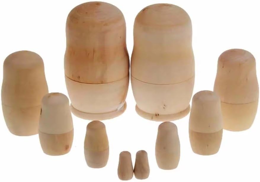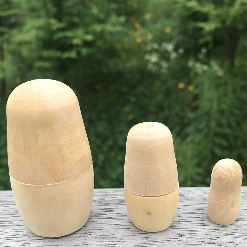 Creatività fai te: queste bambole russe offrono una vasta gamma di possibilità artistiche, consentendoti di liberare tua creatività e trasformare ogni bambola in un'opera d'arte unica utilizzando vari materiali per dipingere. Articolo versatile regalo e collezione: è un regalo unico per artigiani, collezionisti di matrioske o chiunque ami l'arredamento personalizzato. Eccellente effetto decorativo: con loro individualità e il loro fascino accattivante, queste bambole russe dipinte a mano aggiungono un tocco artistico distintivo all'arredamento della tua casa. Doppio ruolo: decorazione e artigianato fai te: funziona come elemento decorativo finito dopo verniciatura per mensole, caminetti o espositori per regali e come pratico kit fai te. Materiale in legno naturale: le nostre bambole russe dipingere a mano sono realizzate in legno autentico, durevole e dalla struttura robusta.