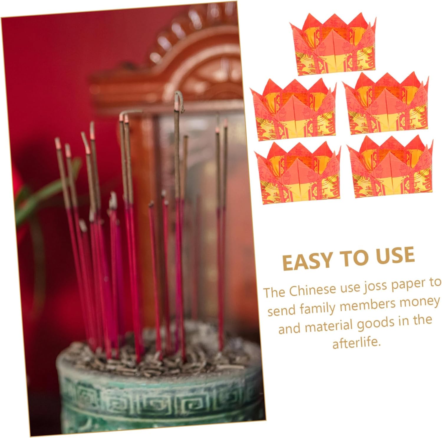Cartamoneta: l'eccellente fattura del nostro prodotto ti offrirà un'ottima esperienza utente. Offerte – sebbene semplici nel design, sono così pratiche quando vengono utilizzate: offerte. Lamina d'oro in carta cinese - per funerali, festa delle tombe, compleanno ancestrale, festa dei fantasmi affamati (15 luglio), festa dei defunti, festa di Qingming (5 aprile), denaro fantasma di Qingming. Benedizione sacrificale, carta gialla – denaro ancestrale un gesto rispettoso per onorare i propri antenati, banconote. Benedizione del denaro - questa è un'usanza tradizionale di tutto il popolo cinese e in questo modo puoi benedire tutti i parenti e gli amici con pace e offrire denaro.