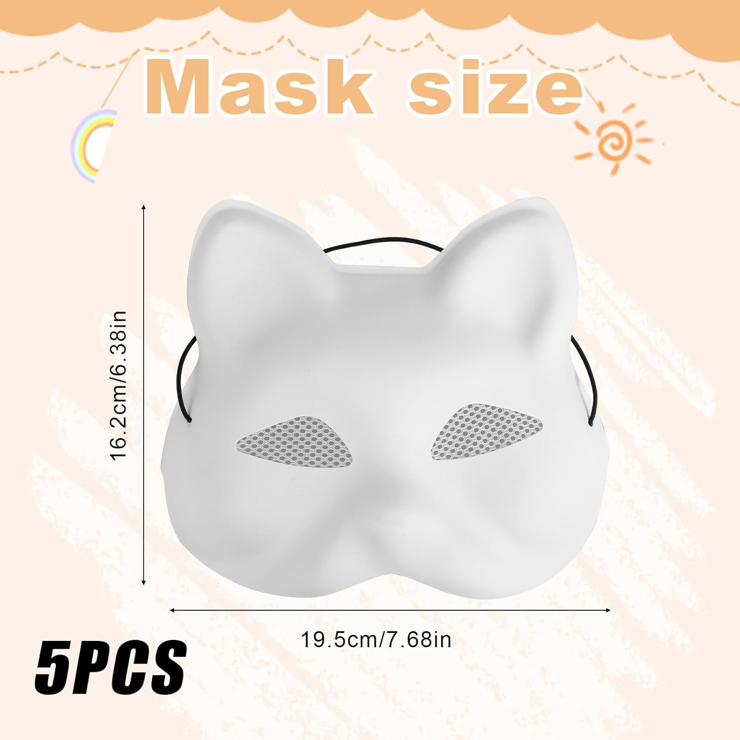 Specifiche: Colore: bianco Materiale: plastica Dimensioni del prodotto: 19,5 x 16,2 x 7,5 cm Dettagli della confezione: 5 maschere per gatti con rete per gli occhi Nota: A causa della misurazione manuale, le dimensioni e il peso potrebbero presentare un certo errore. A causa della differenza tra diversi monitor, potrebbe esserci una leggera differenza di colore.