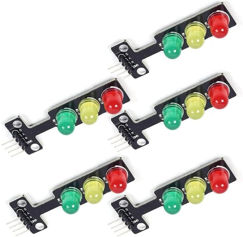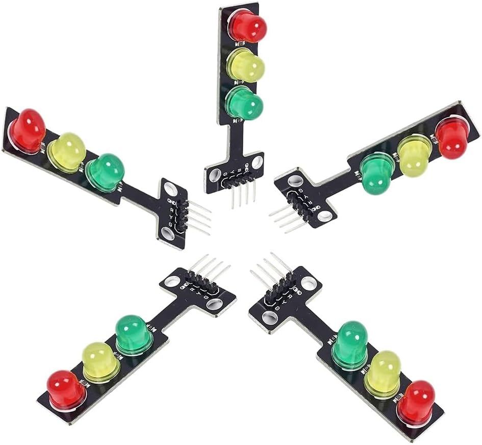 Rosso, Giallo, Verde. 5mm x 3 LED, posizione verticale. 5 moduli di visualizzazione LED per semafori mini da 5 V, blocchi di costruzione elettronici per il modello di semaforico per Tensione - 5 V, Ingresso - Uscita segnale digitale. Può essere utilizzato con 3,3 V e 5 V. Le luci a catodo comune, , gialla e verde sono controllate separatamente, ogni LED può emettere solo un colore di luce. Ottimo per realizzare modelli di sistemi semaforici e progetti di ricerca scientifica a scuola.
