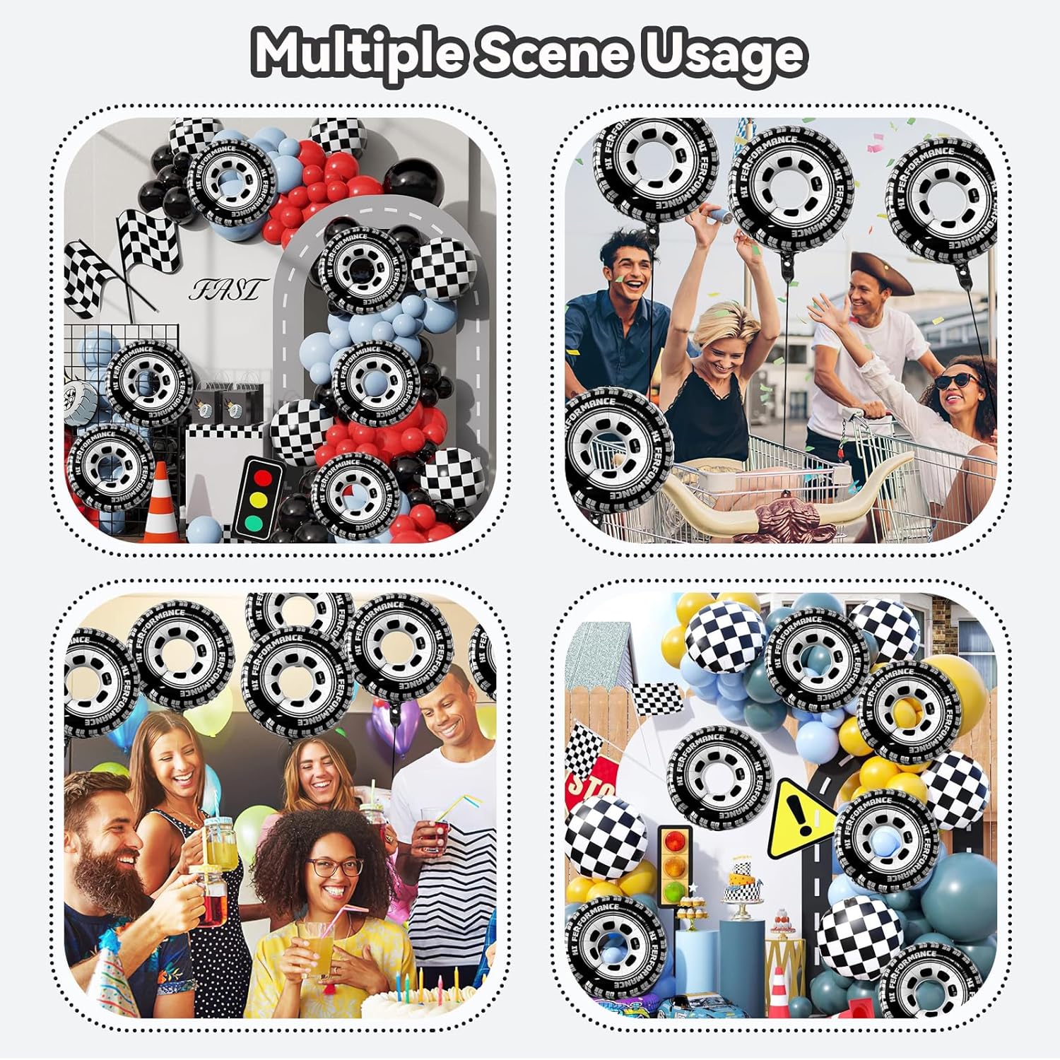 Materiali di Alta Qualità: Ogni palloncini compleanno è realizzato in pellicola di alluminio di alta qualità, che offre un'ottima tenuta e resistenza, resistente a rotture e perdite. Il colore della superficie di palloncini cars è uniforme, stampa del motivo è nitida e non sbiadisce, combinazione di colori nero e argento ripristina lo stile accattivante degli pneumatici da corsa, aggiungendo un'atmosfera da corsa professionale alla festa, regalando a te tuoi ospiti un'esperienza fantastica. Set Ideale: Ogni set di prodotti contiene 5 palloncini in foil per pneumatici da corsa, che possono facilmente soddisfare le esigenze di un party a tema racing. Una volta gonfiato, palloncini per compleanno è accattivante e può riempire rapidamente lo spazio, creando un effetto festa completo senza complicati abbinamenti. Che si tratti di un progetto fai da te o di una decorazione professionale, può essere completato facilmente, risparmiando tempo ed energia. Riutilizzabile: Racing car compleanno decorazioni adotta un design riutilizzabile, gonfiabile e sgonfio, che non solo è comodo per un uso secondario, ma anche più ecologico ed economico. Può essere facilmente gonfiato con una normale pompa ad aria o una cannuccia, e piegato e riposto dopo lo sgonfiaggio senza occupare spazio. Palloncini cars è adatto a famiglie o organizzatori di eventi che organizzano feste più volte ed è una decorazione conveniente. Design Interessante: Palloncini a forma di ruote di auto da corsazza adotta un design unico delle ruote, simile a un vero pneumatico, con una combinazione di colori nero e argento e slogan di performance, che accenderanno immediatamente la tua festa con la passione per le corse! Appendere questo palloncini per ruote auto alla festa può facilmente creare senso velocità e potenza, accendere l'entusiasmo tutto il pubblico e permettere agli ospiti immergersi nel fascino della cultura delle corse. Ampia Applicazione: Questo palloncini è adatto a molteplici scenari e può essere utilizzato per feste di compleanno a tema corse per bambini, attività di kart club, saloni dell'auto, corsi creativi fai da te per le scuole, ecc. Palloncini in foil per pneumatici da corsa può essere utilizzato come elemento decorativo per aggiungere atmosfera, flessibile e pratico, aiutandoti a scoprire modi più creativi di giocare e diffondere l'entusiasmo per le corse ovunque.