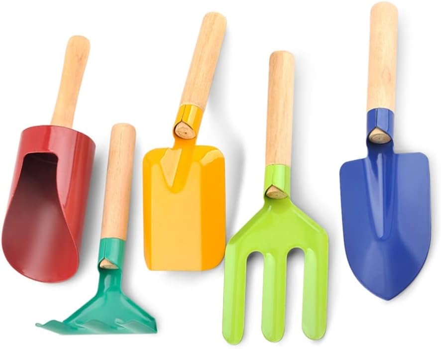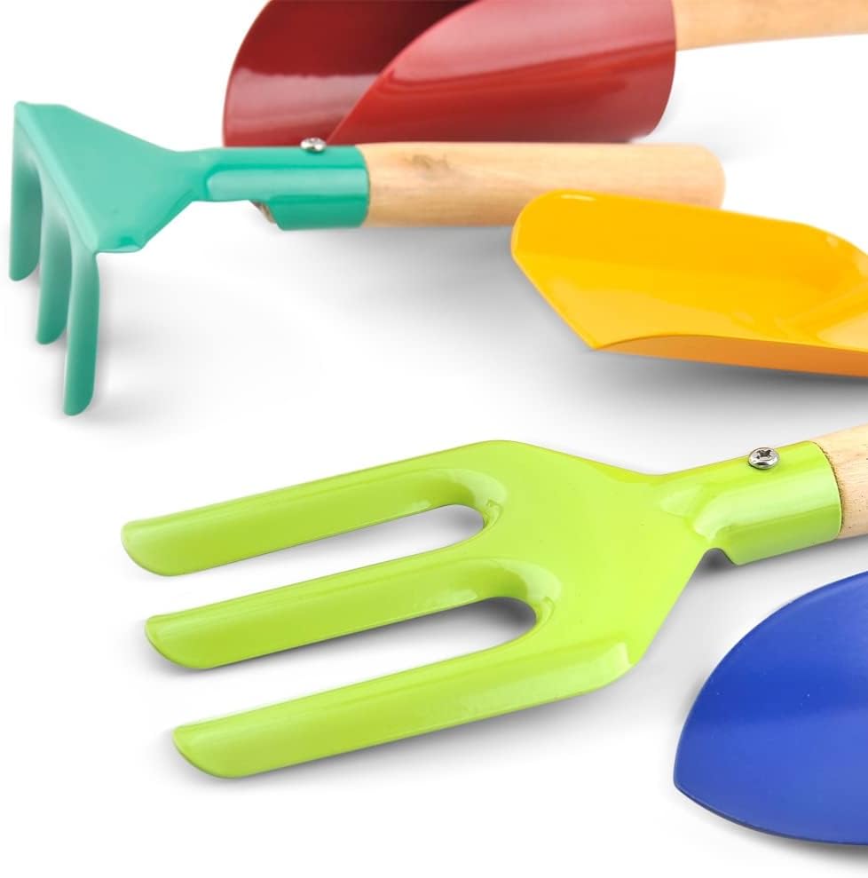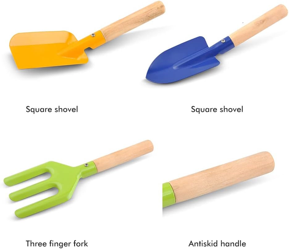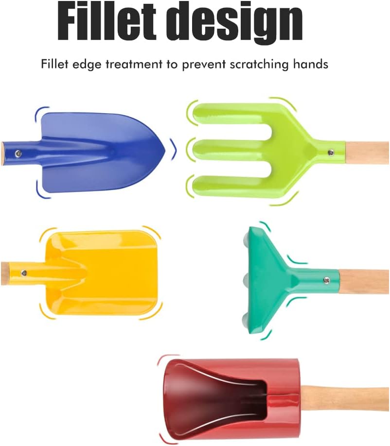 1. I colori vivaci degli strumenti di mini giardino li rendono molto popolari tra i bambini. 2. Il set contiene 1 pala appuntita, 1 pala quadrata, 1 tubo della pala a mano, 1 rastrello e 1 forchetta a tre . 3. Fatto in metallo e legno. I sono morbidi e traspiranti, che possono proteggere le mani dei bambini. Gli strumenti da giardino sono robusti e facili da pulire. Possono gestire pavimenti duri e sabbia. Possono anche essere usati come giocattoli da spiaggia. 4. Attraverso l'uso degli strumenti di giardinaggio dei bambini, i bambini ottengono molti esercizi fisici, che stimolano la creatività, il pensiero e l'immaginazione e sviluppano abilità fisiche e sociali mentre si godono il giardino. 5. Set di utensili da giardino per bambini è dai colori vivaci, di dimensioni ridotte e progettato in base alla proporzione di bambini. Adatto per piccole mani. I bambini possono scegliere gli strumenti giusti in base alle diverse esigenze di semina.