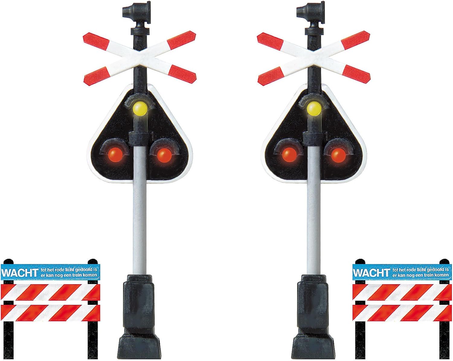 [SIGLIA MODELLO VERSATILE]: queste 5 lampade di segnalazione OO/HO sono perfette per layout ferroviario e edificio. Con un'altezza di 27 mm, si adattano armoniosamente al paesaggio del modello. [Costruzione di alta qualità]: realizzate con una combinazione di plastica ABS e metallo, queste lampade di segnalazione offrono una soluzione robusta e durevole per il vostro impianto di modellismo. Illuminazione flessibile: dotato di LED e cablaggio completo, questi segnali possono essere alimentati a 3 V o 12 V. Il filo rosso è per il positivo, quello blu per il connettore negativo. Molteplici possibilità di utilizzo: ideali per accessori per modellismo, decorazione da giardino, paesaggistica, modelli ecologici di bottiglie e progetti fai da te. Aggiungi un tocco realistico alle tue creazioni. [FACILE INSTALLAZIONE]: con i LED e i cavi preinstallati, queste lampade di segnalazione sono facili da montare e mettere in funzione. Porta il tuo impianto di modellismo a un nuovo livello con questi elementi dettagliati.